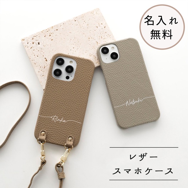 全機種対応 スマホケース 【 本革 まるっと Nuance 名入れ 】 スマホショルダー 名入れ無料