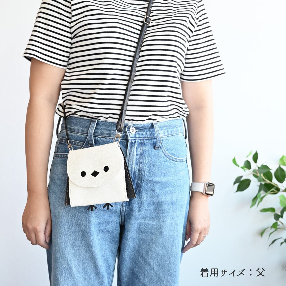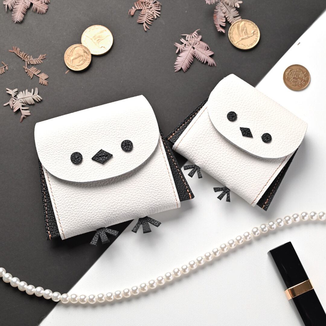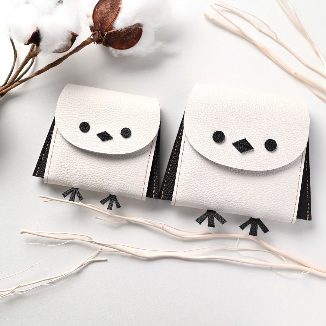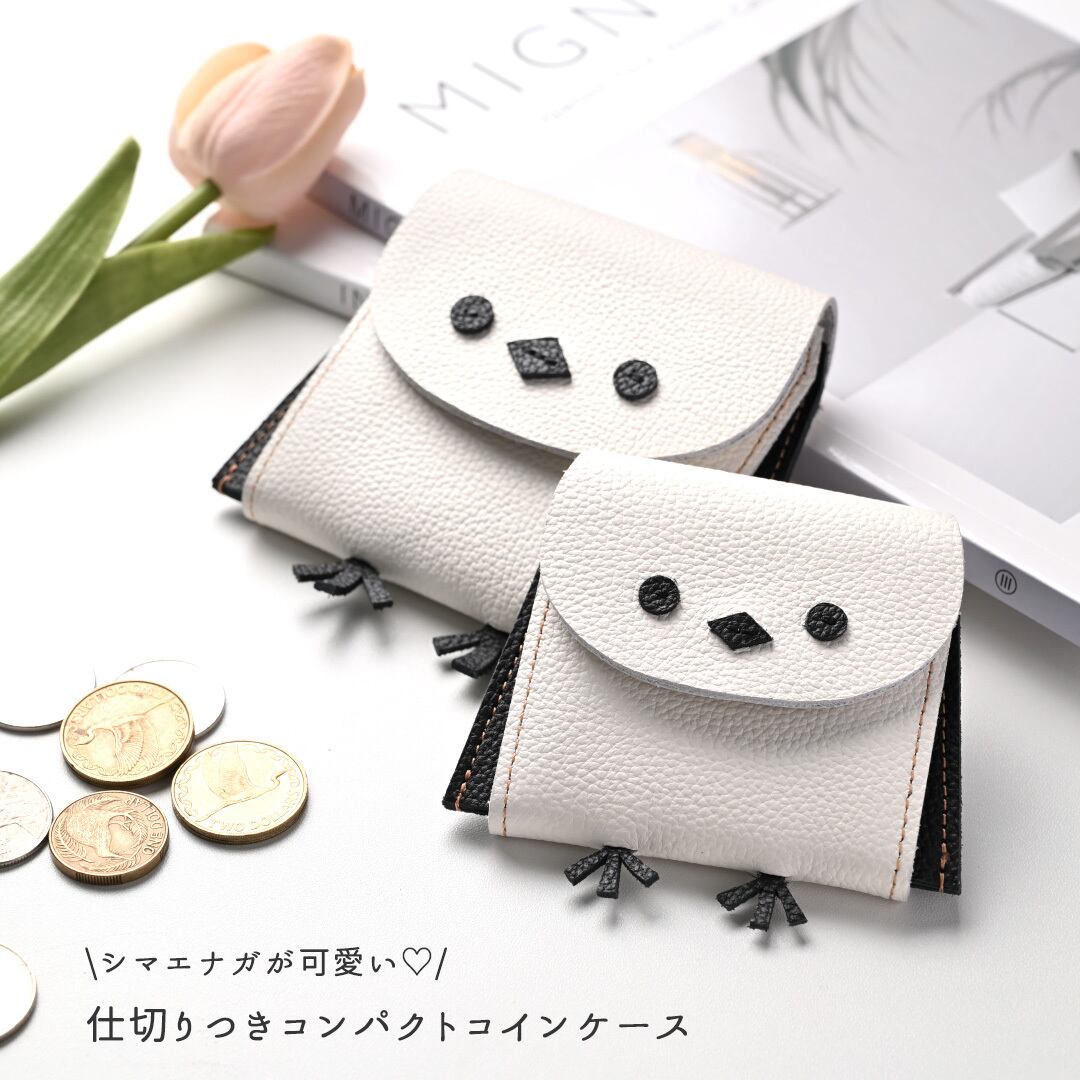 \シマエナガといつも一緒/ 仕切り付き コインケース 【 シマエナガ 子 】 本革 姫路レザー 財布