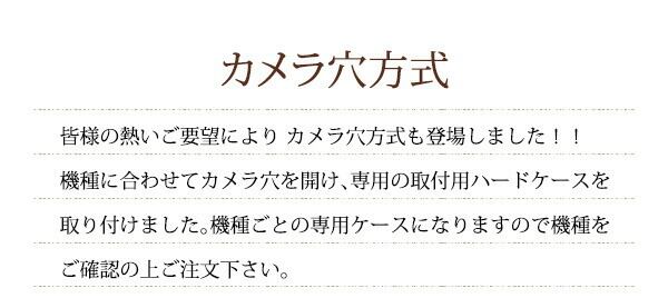 ※カメラ穴は通常の撮影時は問題なく使用できますがフラッシュを使用した場合ケースのお色が写り込む場合がございます。