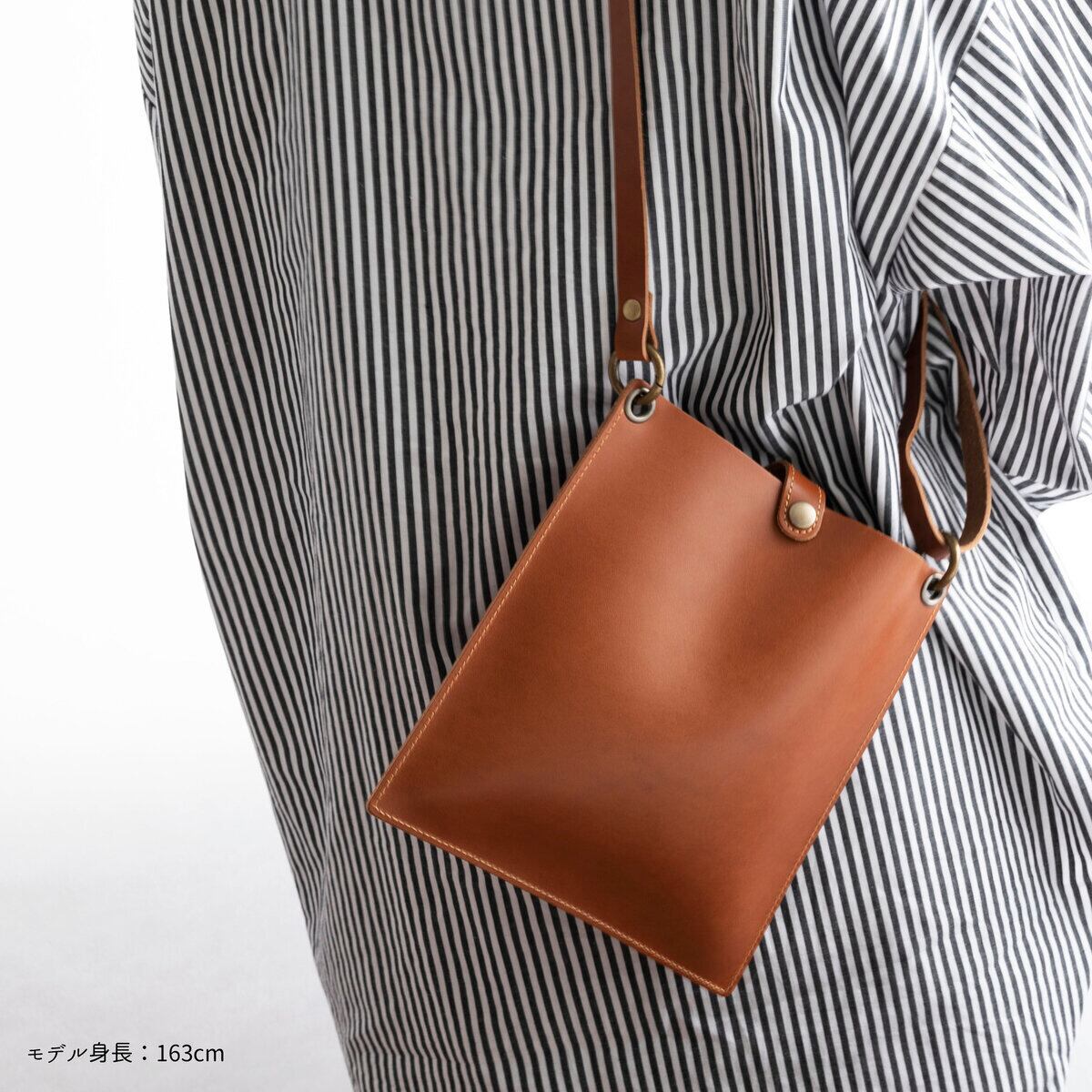 マチなしの縦スタイルのため、身体にフィットしやすいです。