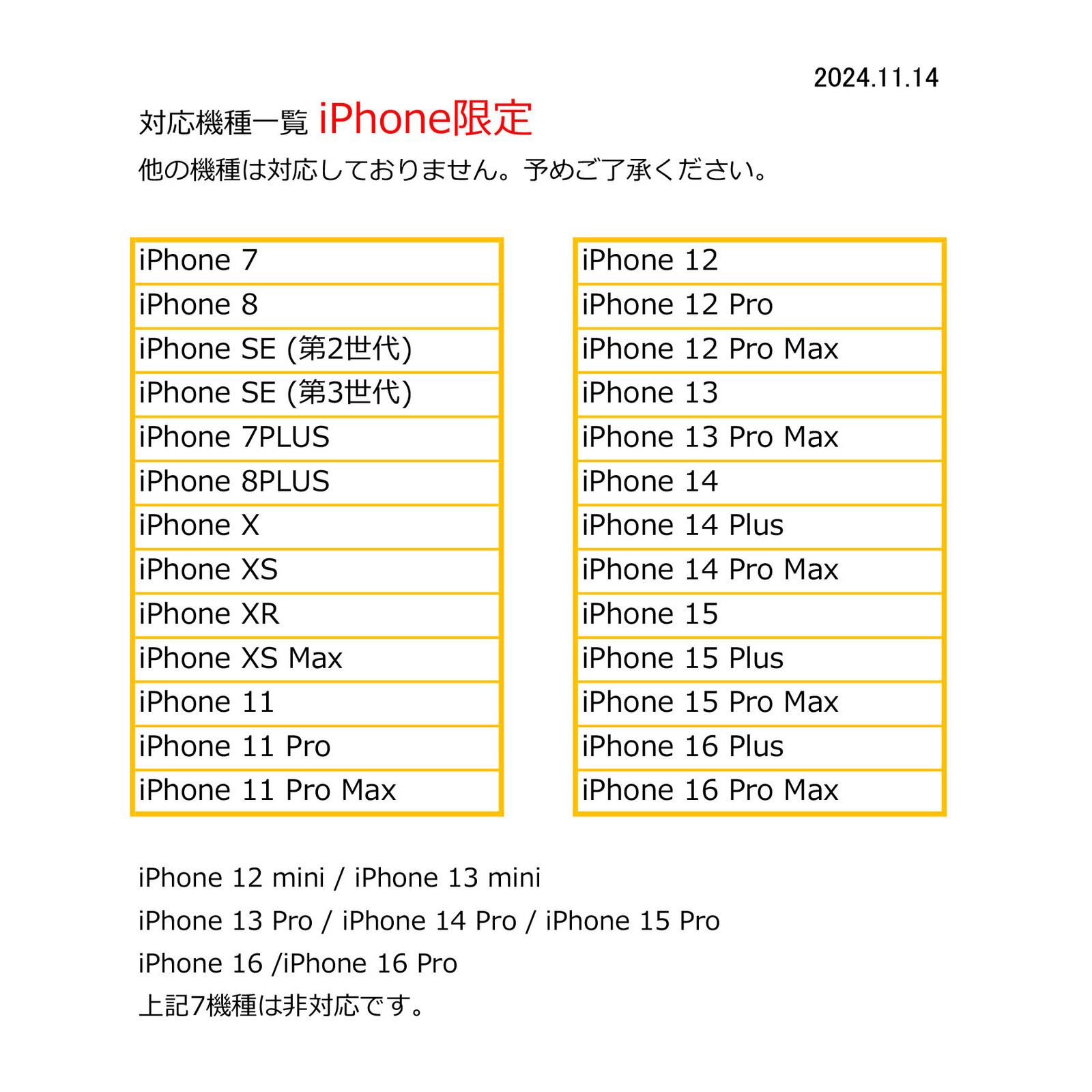 iPhone12 mini / iPhone13mini / iPhone 13 Pro / iPhone14 Pro / iPhone15 Pro は非対応です。