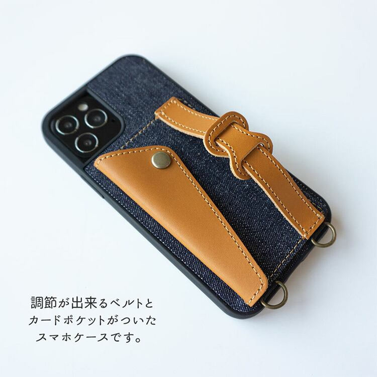 iPhone限定 TPU リアケース 【 ベルト付き 岡山デニム × イタリアンレザー 】 本革 スマホショルダー