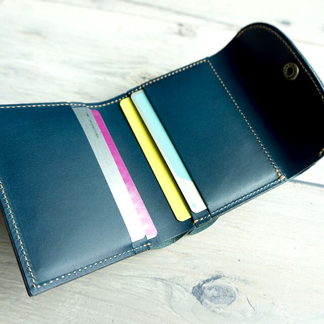 小さなカバンにもスッキリ入れられるシンプルな三つ折財布です。