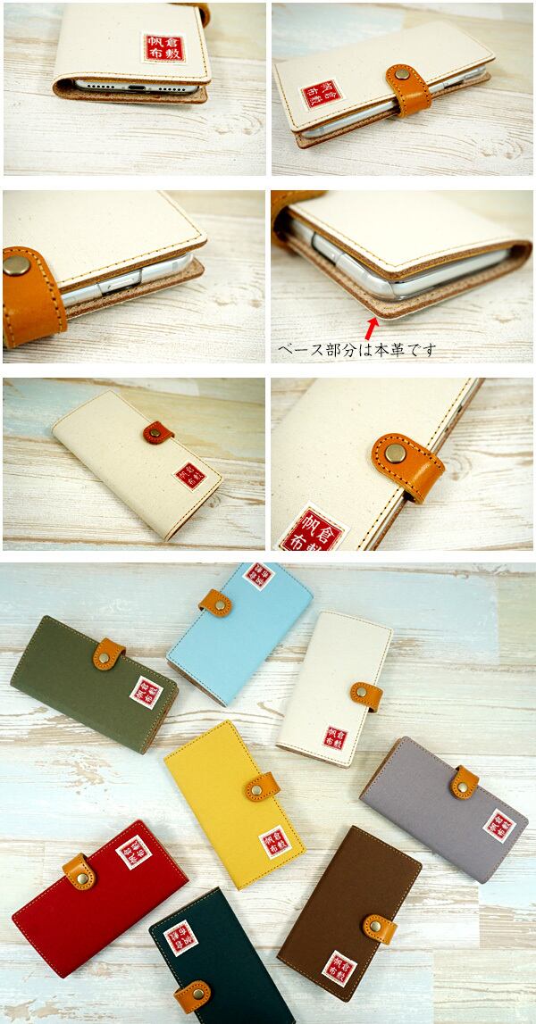 AndroidもOK!! 全機種対応 手帳型 スマホケース 【 倉敷帆布 本革仕込み 】 本革