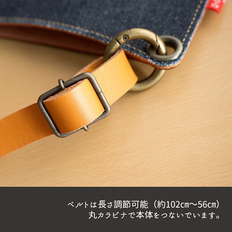 デニムとレザーの贅沢な本革仕込みのサコッシュです。