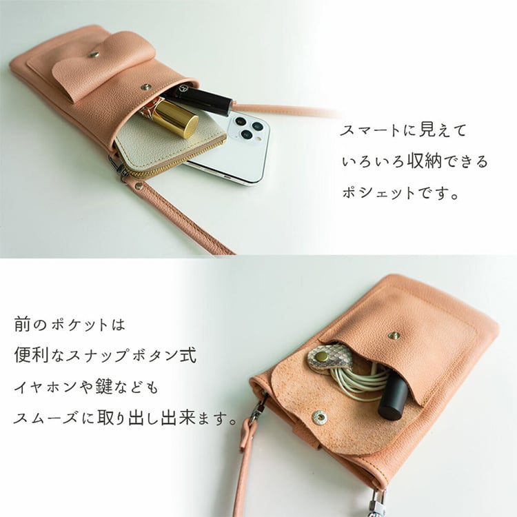【限定価格】 スマホポシェット 【 ナチュラル カラー Mild 】スマホショルダー スマホケース 姫路レザー シュリンクレザー