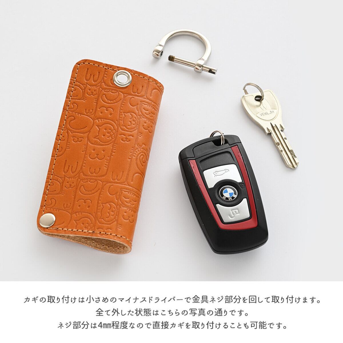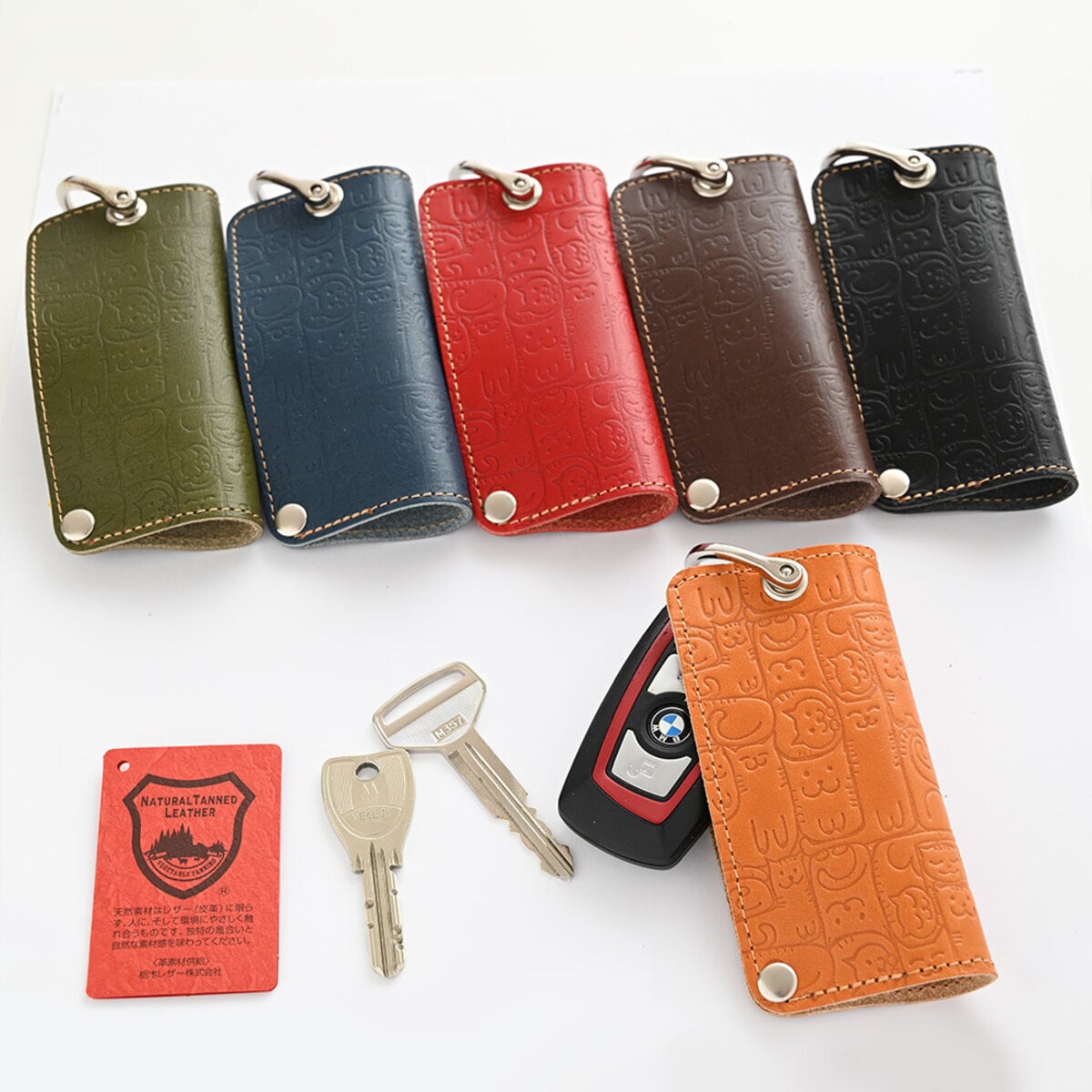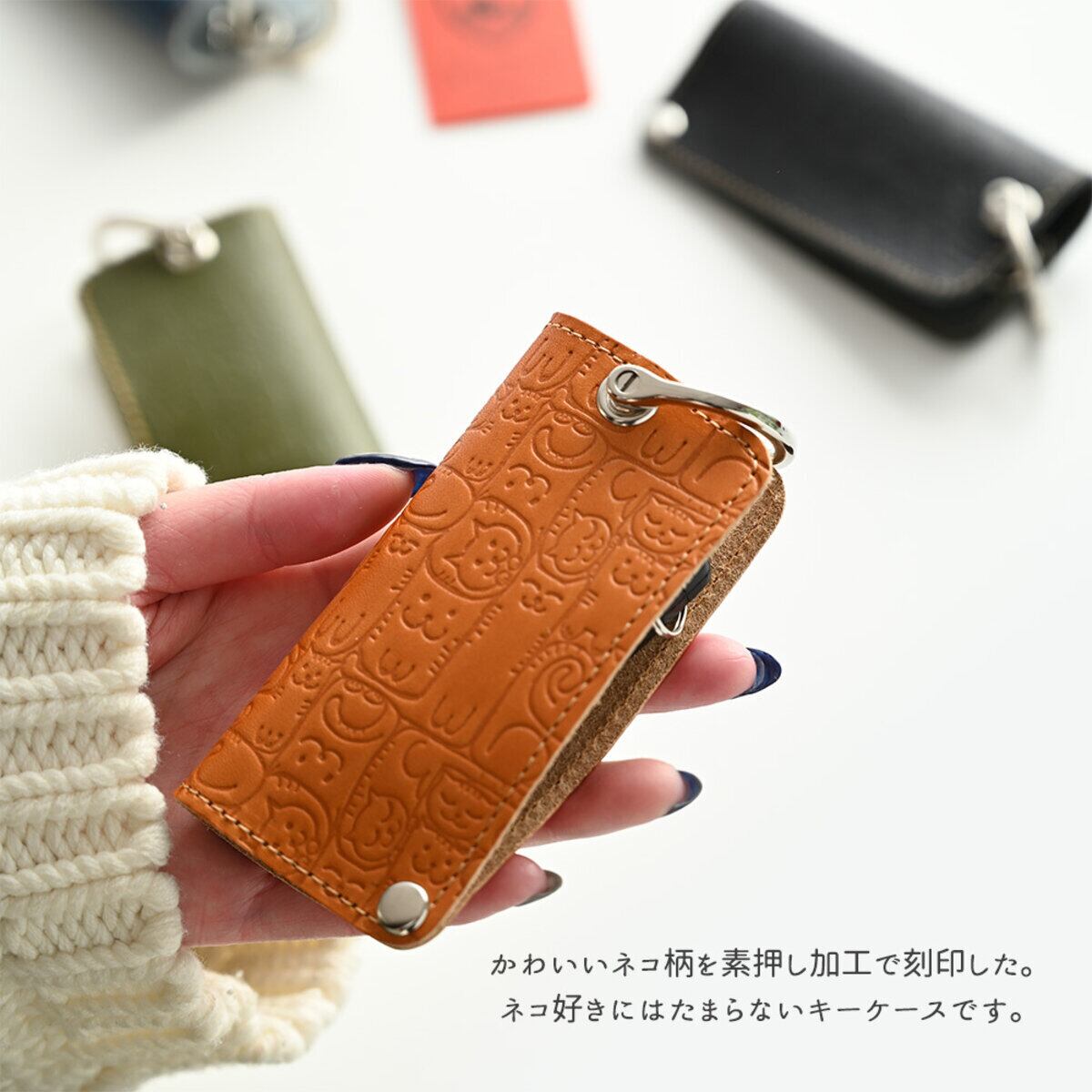 コンパクト キーケース 【 ブロックねこ 】 栃木レザー 牛革