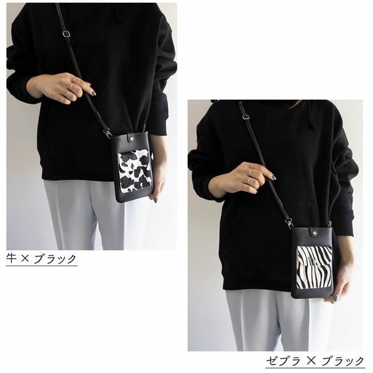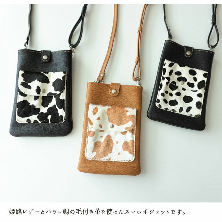 スマホポシェット ハラコ調 【 アニマル柄 】牛革 レザー 革 ミニショルダー 長さ調節可能 お財布ポシェット スマホショルダー 送料無料