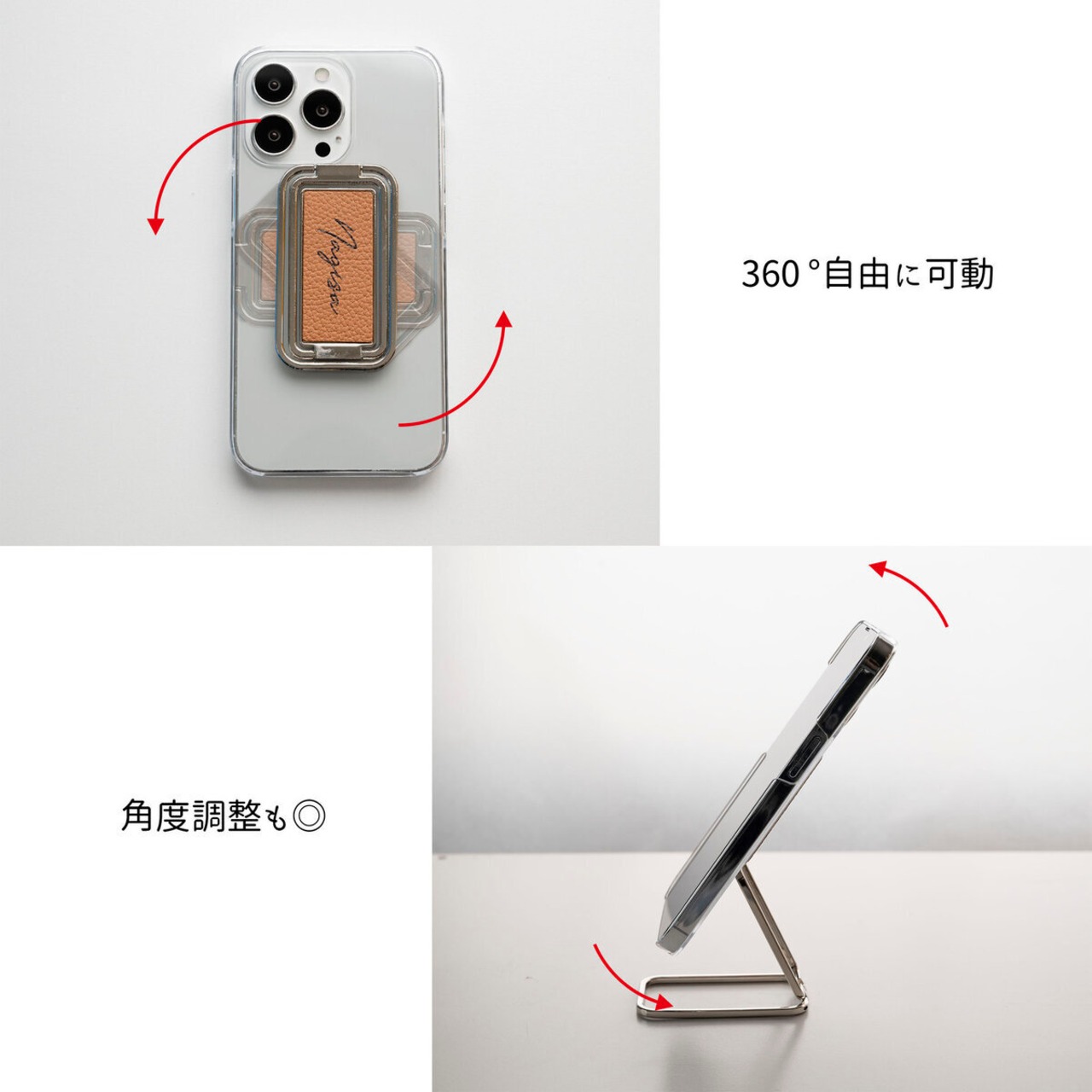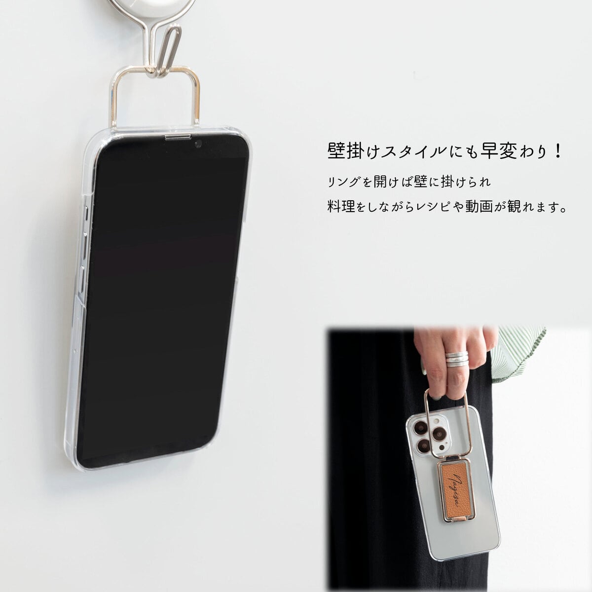 名入れ スマホ多機能リング 【 シュリンクレザー 】 縦動画対応 スマホリング スマホスタンド 名入れ無料