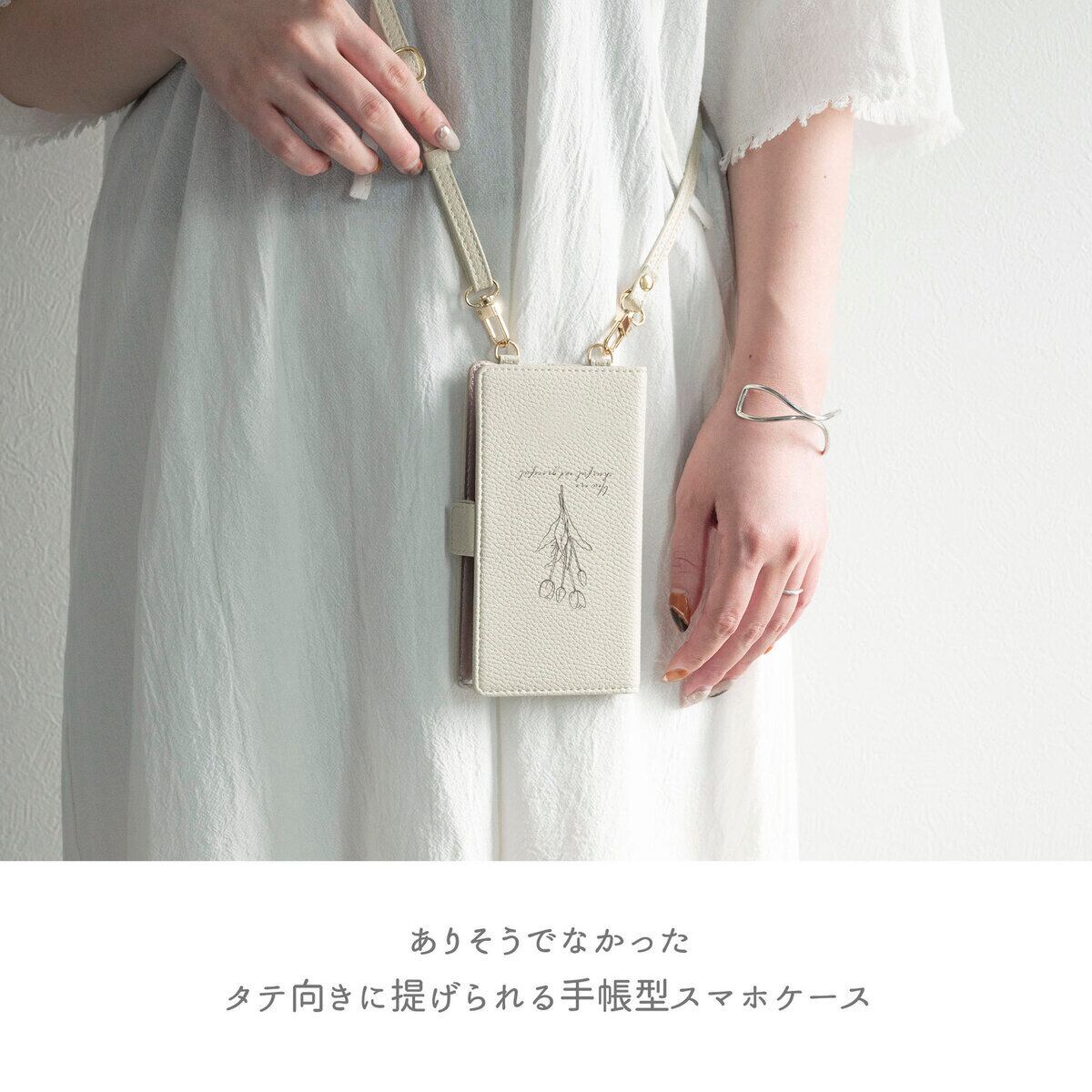 全機種対応 スマホケース 縦向き 手帳型 【 Simple デザイン - flower ‐ 】 スマホショルダー