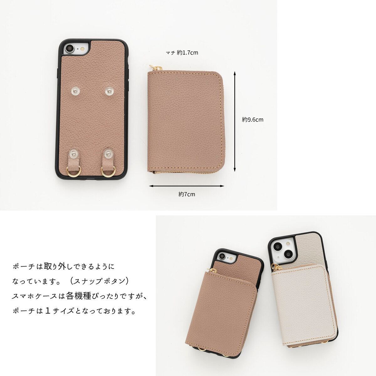 リアケース 付け替え式 ラウンドファスナーポーチ付き 【 シュリンクレザー 】 スマホショルダー