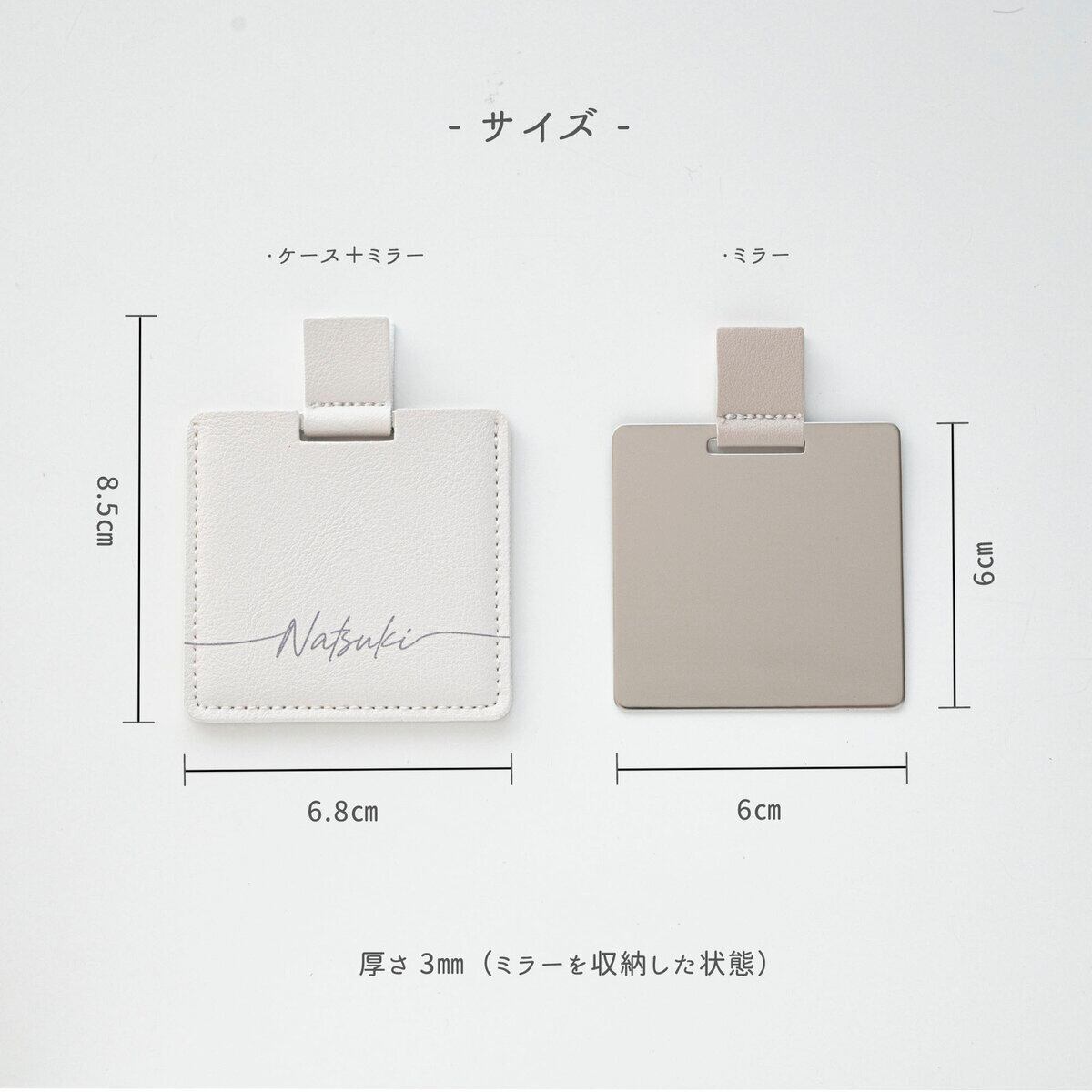 収納ケース付き の 手のひらサイズの ポケットミラー です。