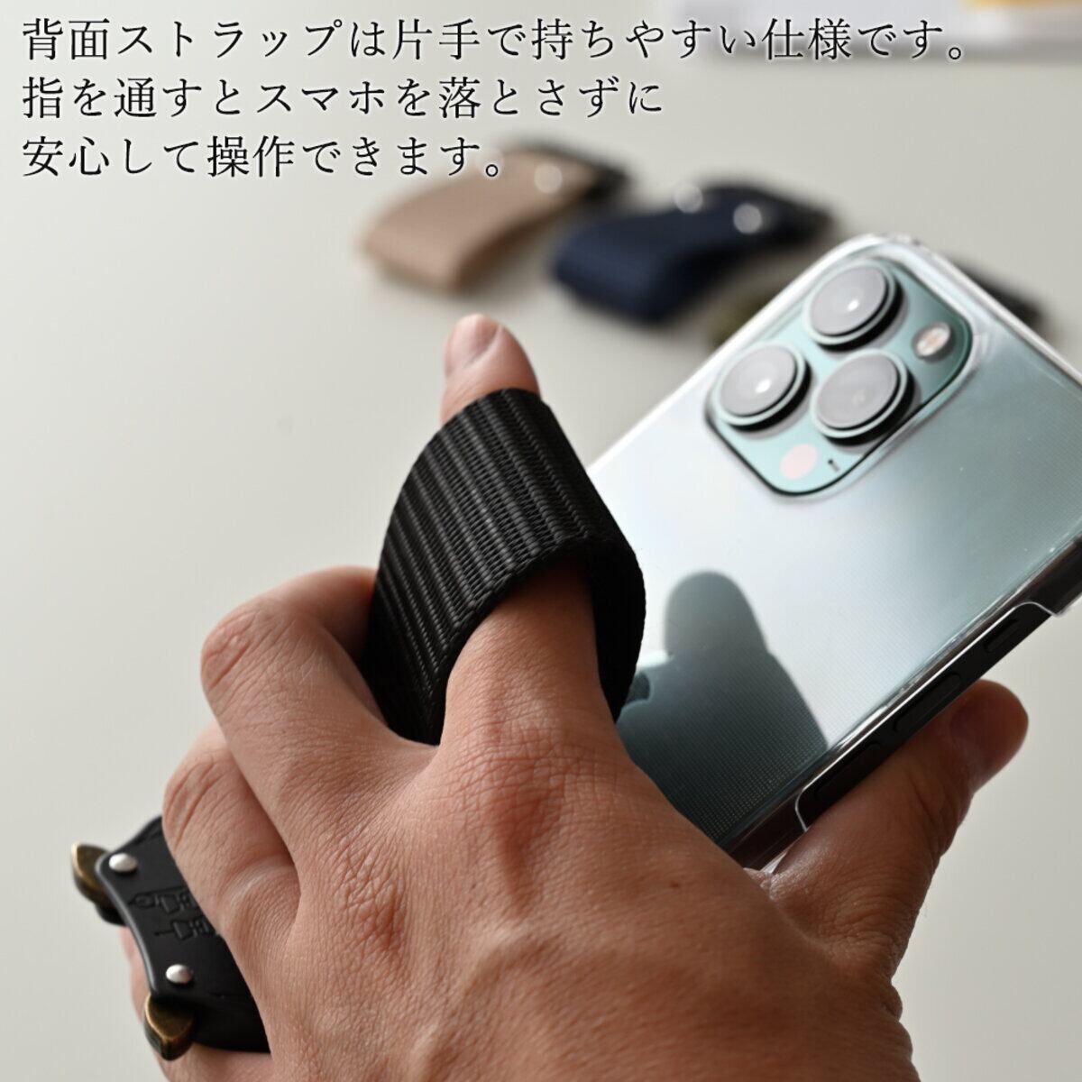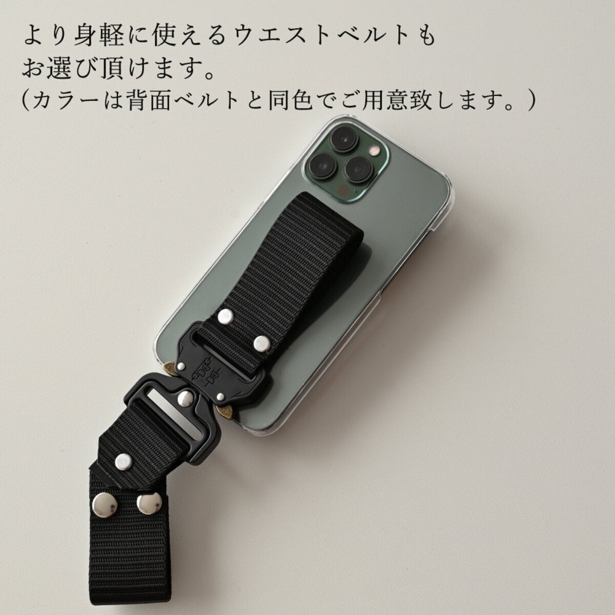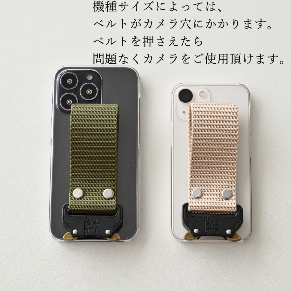 *背面ベルトの長さは固定のため、お使いの機種によってはベルトがカメラ穴にかかる場合がございます。