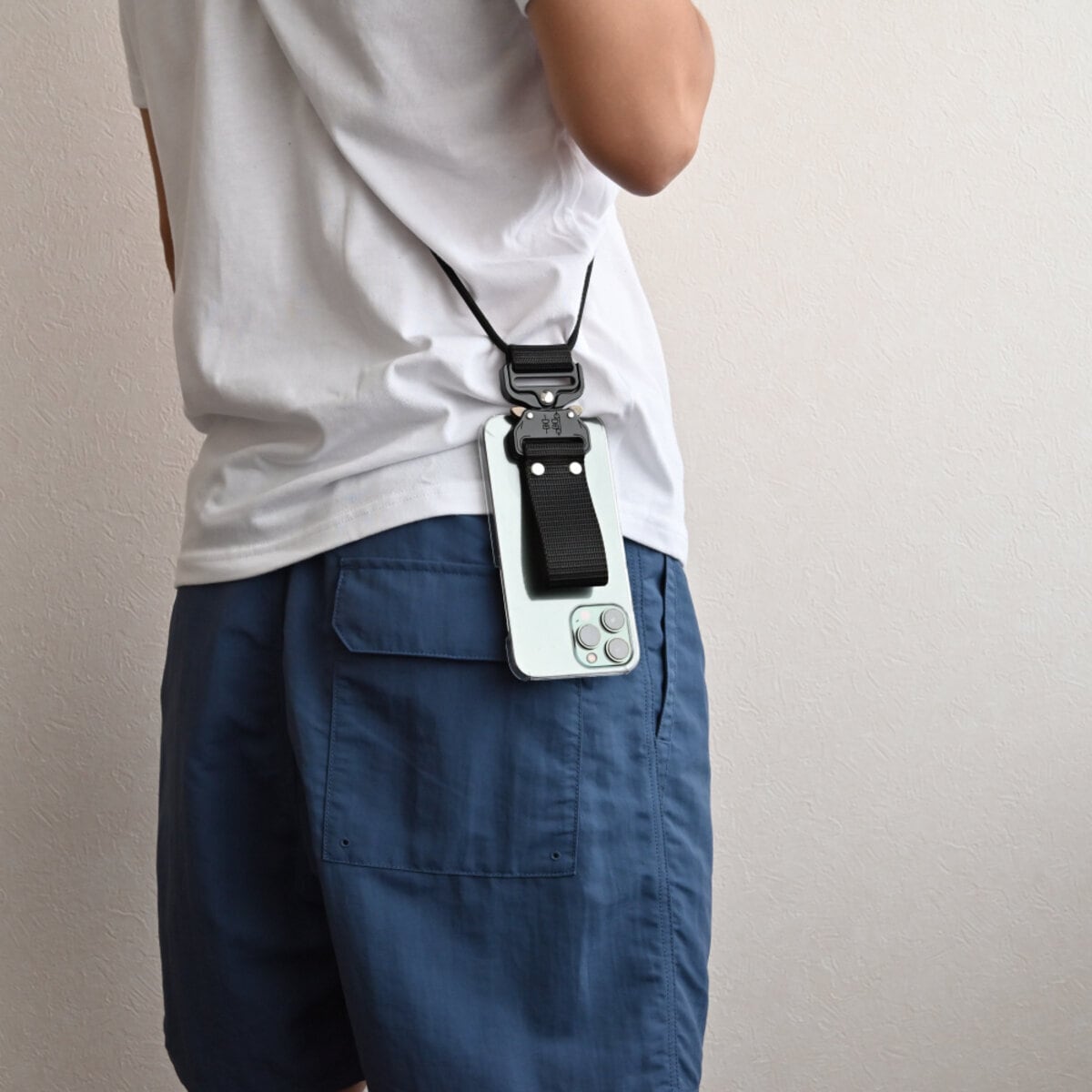 スタイリッシュな便利さを兼ね備えたベルト付きスマホケースです。
