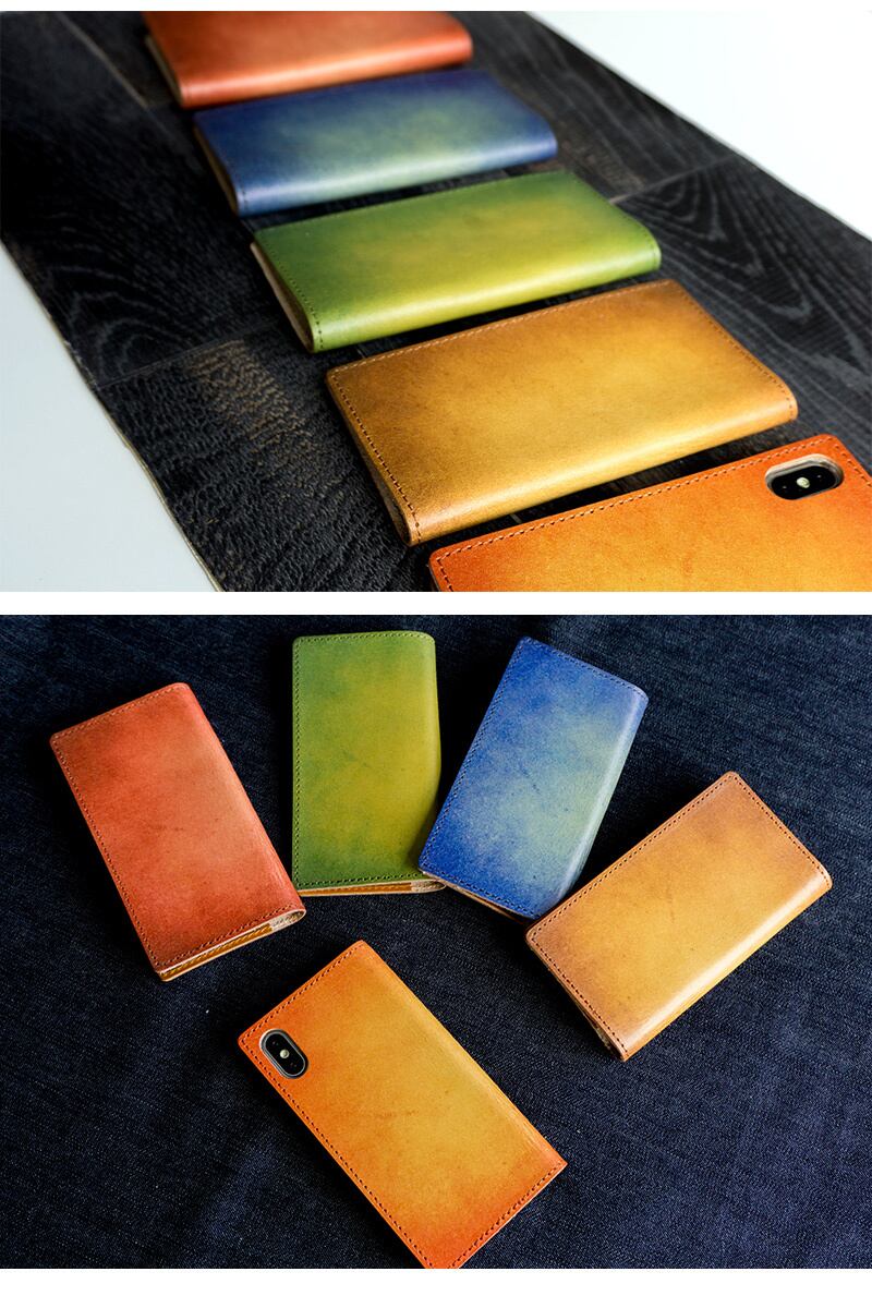 スマホケース 全機種対応 手帳型 姫路レザー ベルトなし グラデーションレザー 革 本革21 マグネットなし