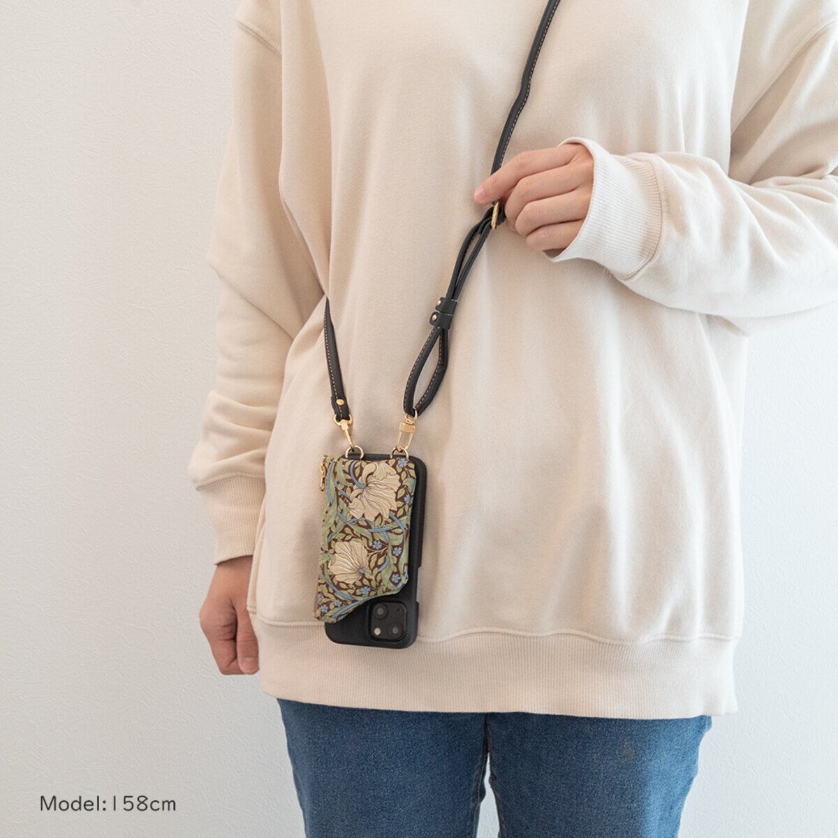 多機種対応 スマホケース 【 まるっと 付け替え ポーチ ピンパネル 】スマホショルダー ウィリアムモリス