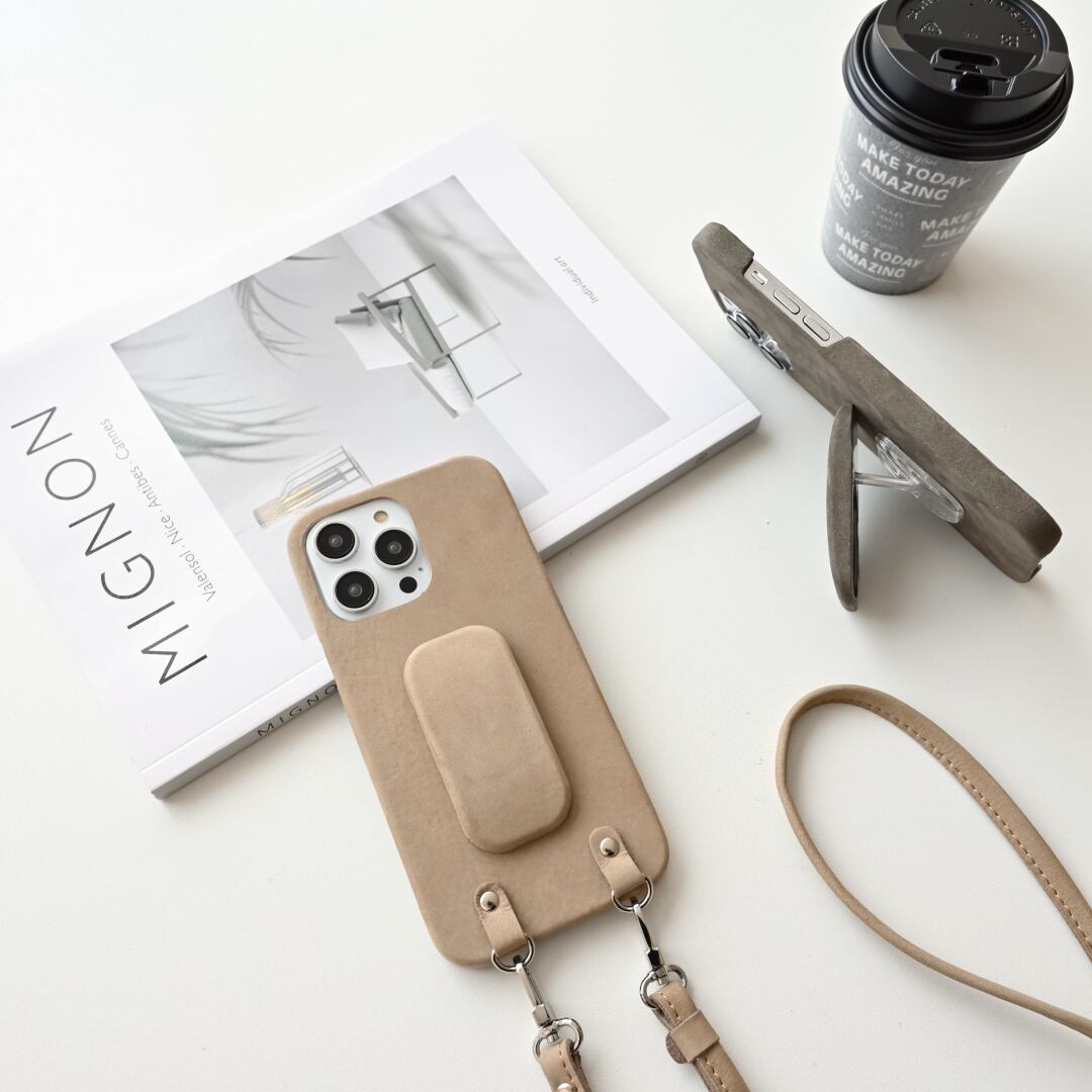 しっとりやわらかな質感のヌバックレザーのスマホケースに