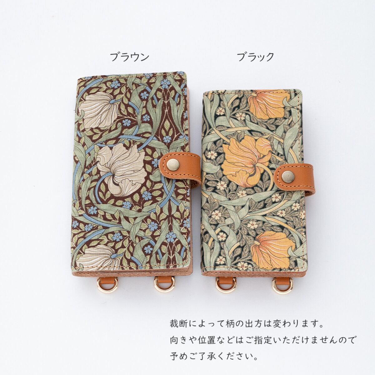 全機種対応 スマホケース 手帳型 【 縦下げパーツ ピンパネル 】 ウィリアムモリス レザー スマホショルダー
