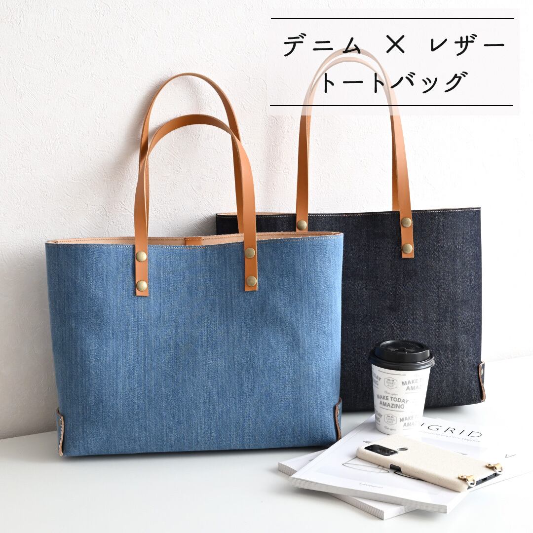 【 A4 デニムトートバッグ 】 本革 イタリアンレザー 大容量 送料無料