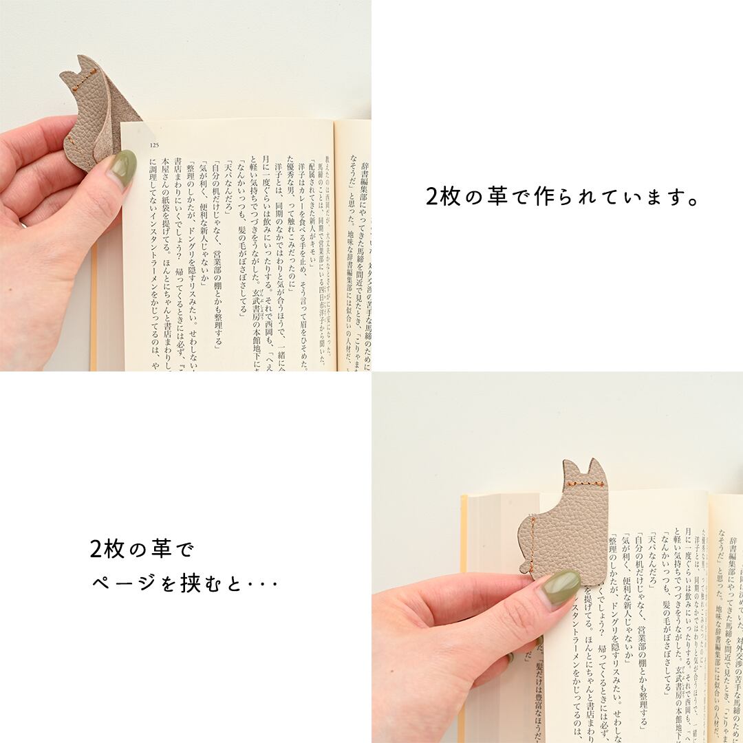 こちらのブックマーカーは2枚の革で作られています。