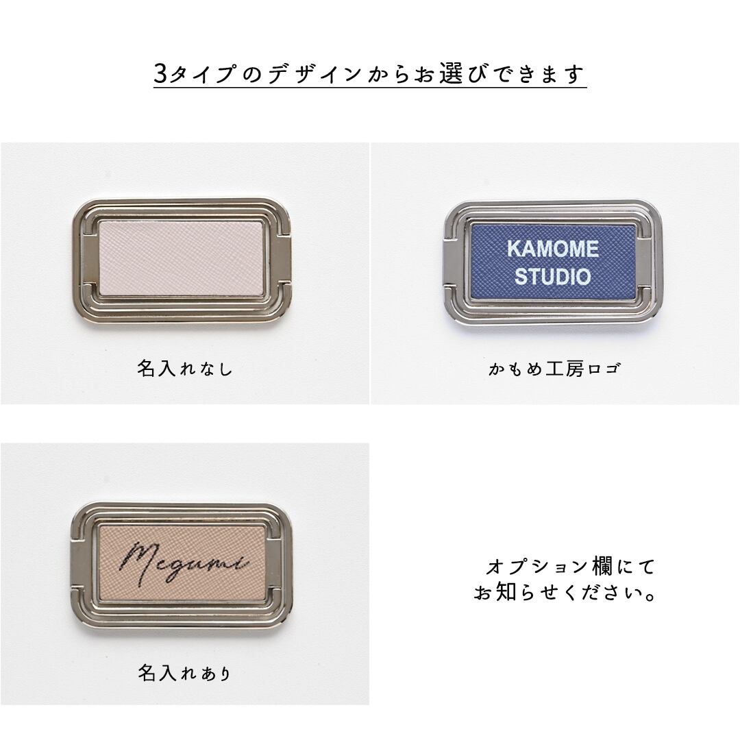 さらに高級感あるサフィアーノレザーに名前まで入れられます。