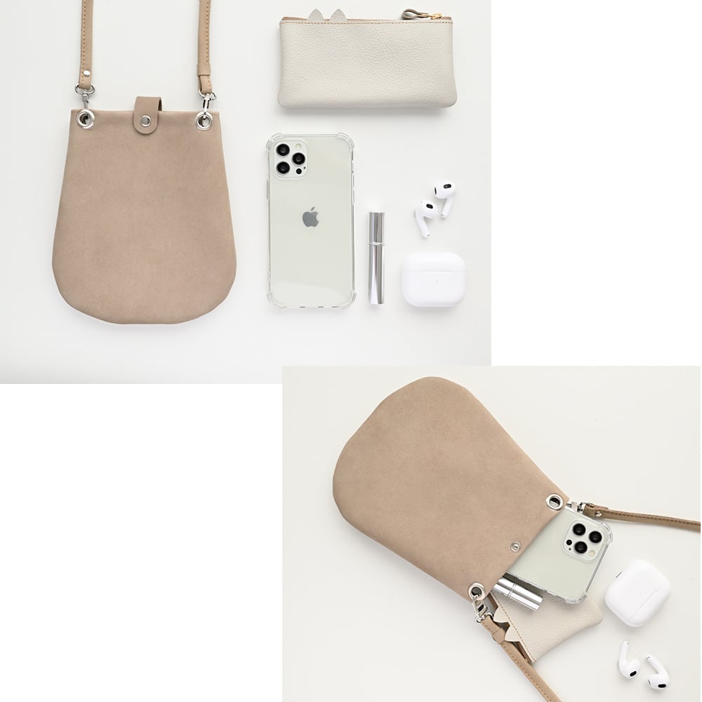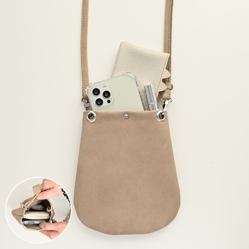 しっとりとした質感のヌバックレザーのポシェットで
