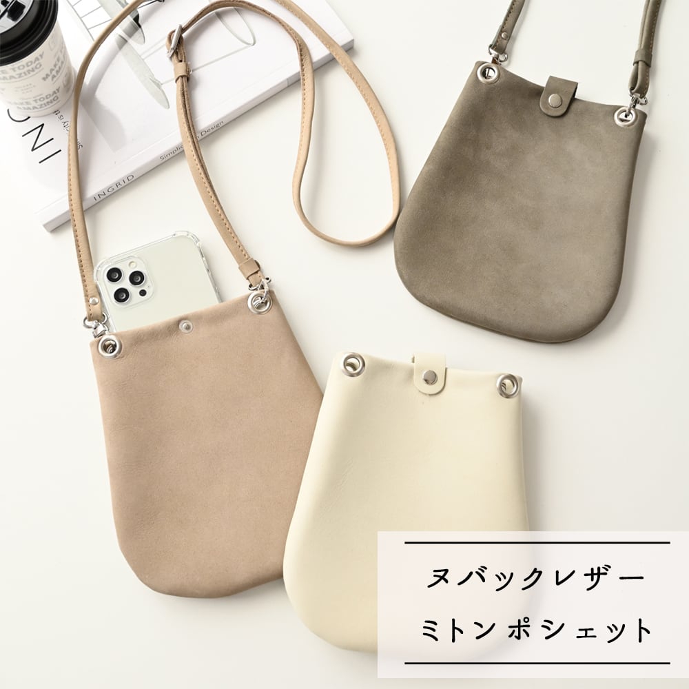 ミトンポシェット 【 ヌバックレザー 】 ハンドバッグ 本革