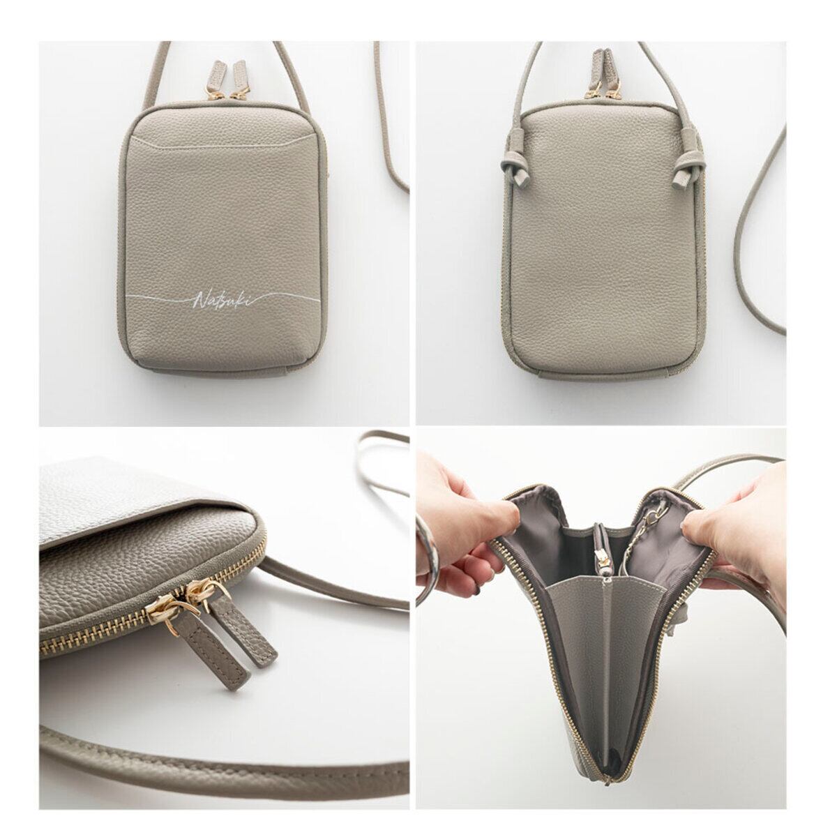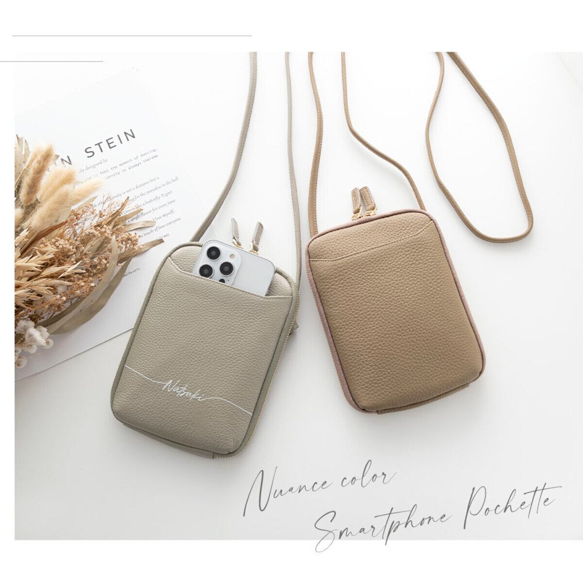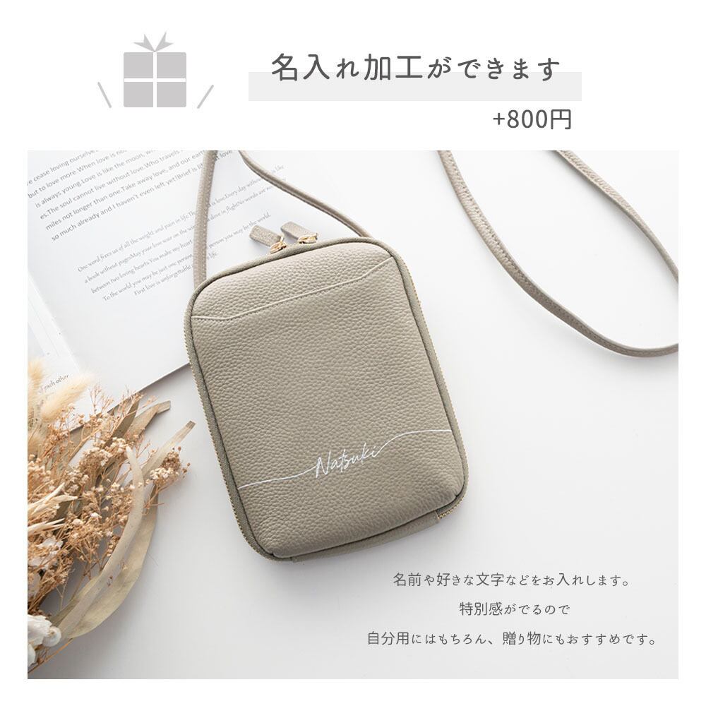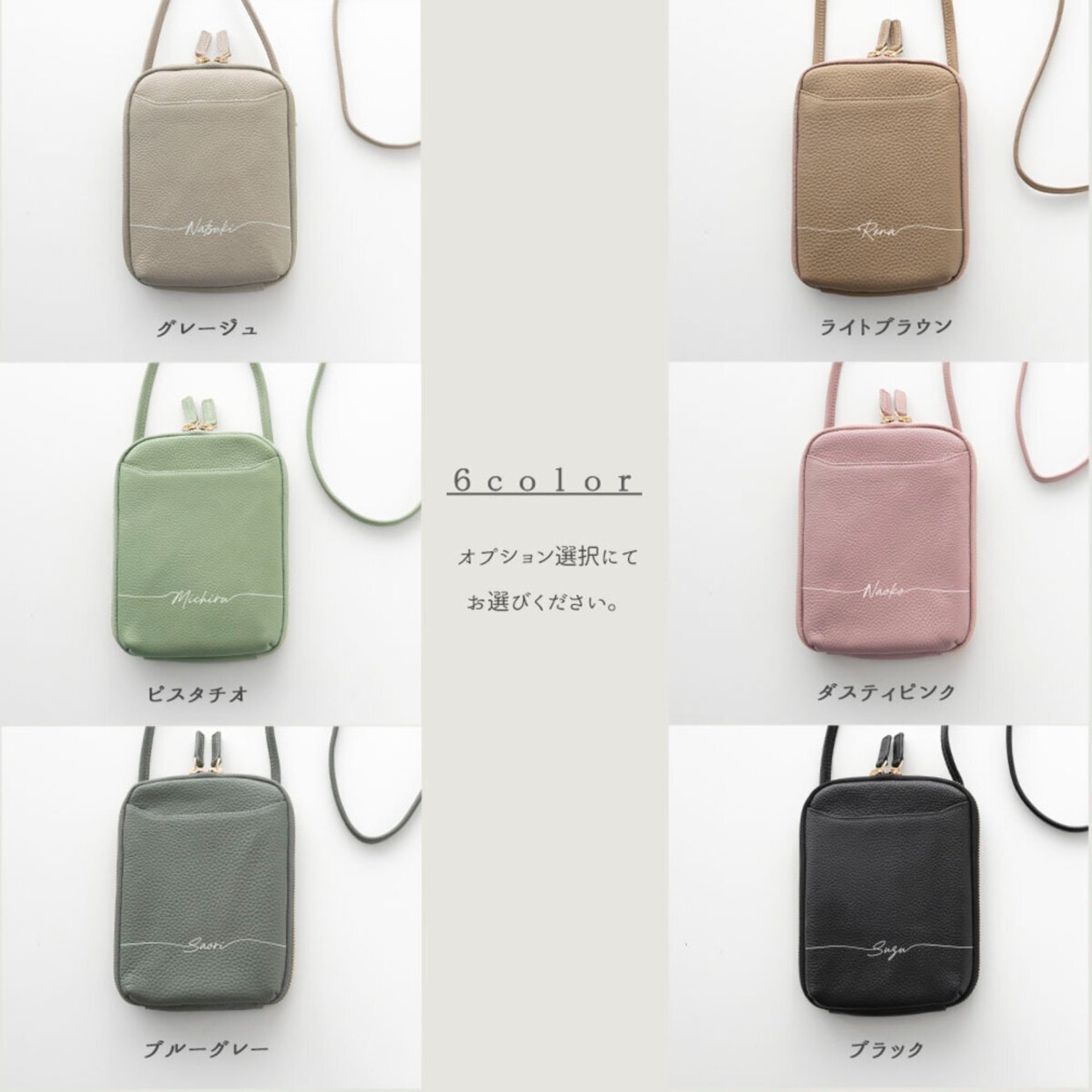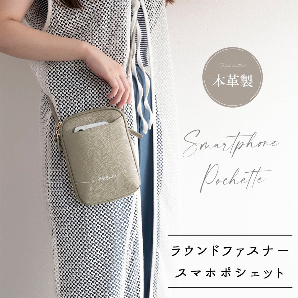 【 ラウンドファスナー スマホポシェット 名入れ 】 本革 スマホショルダー カード入れ キーリング スマホポーチ ニュアンスカラー