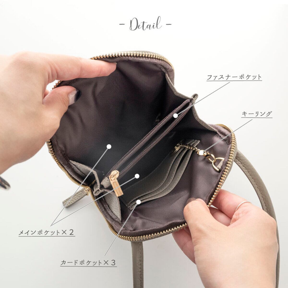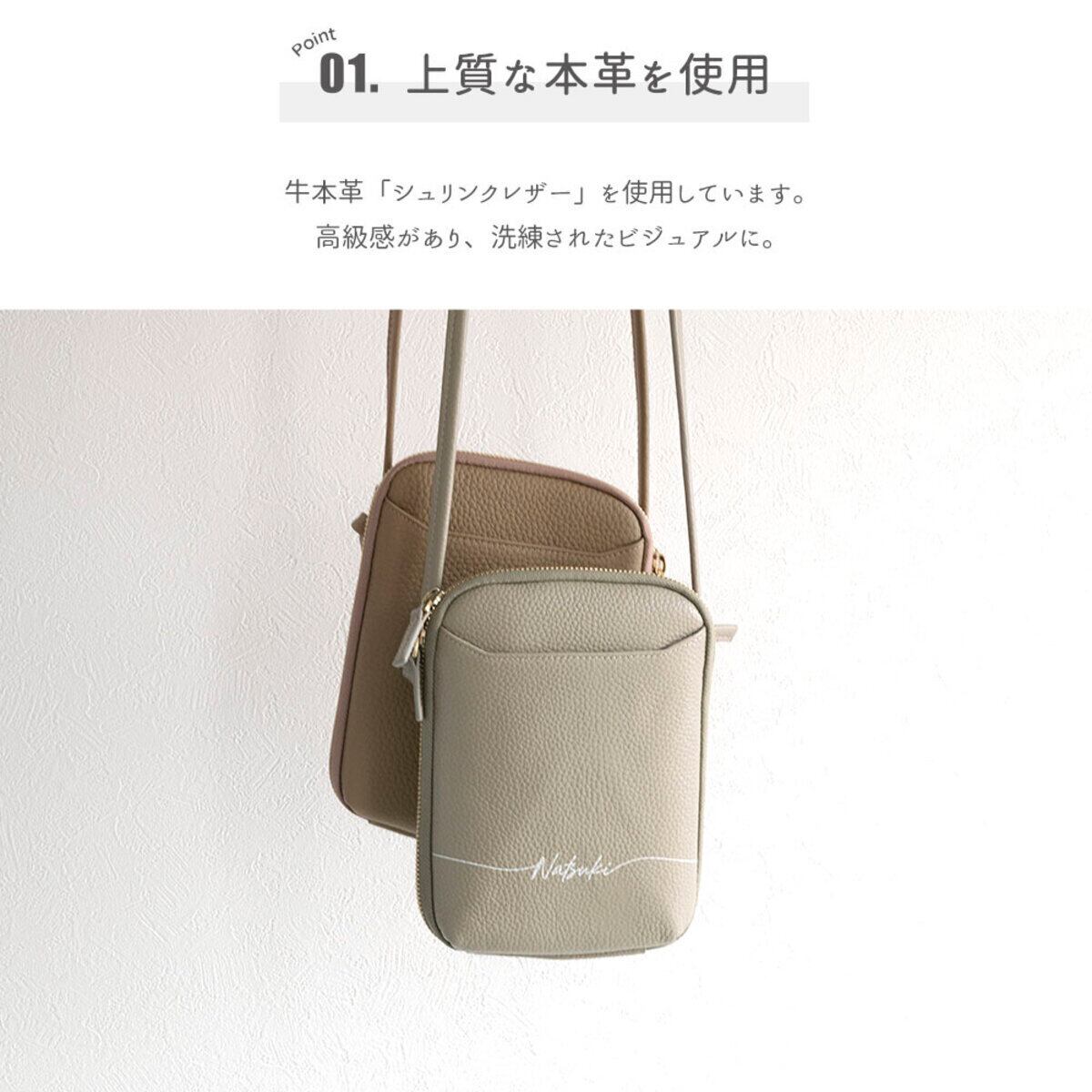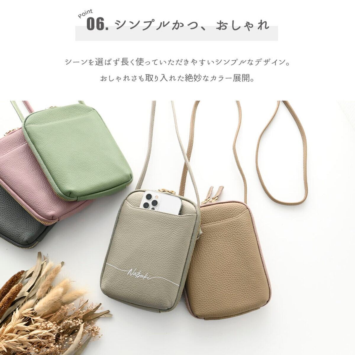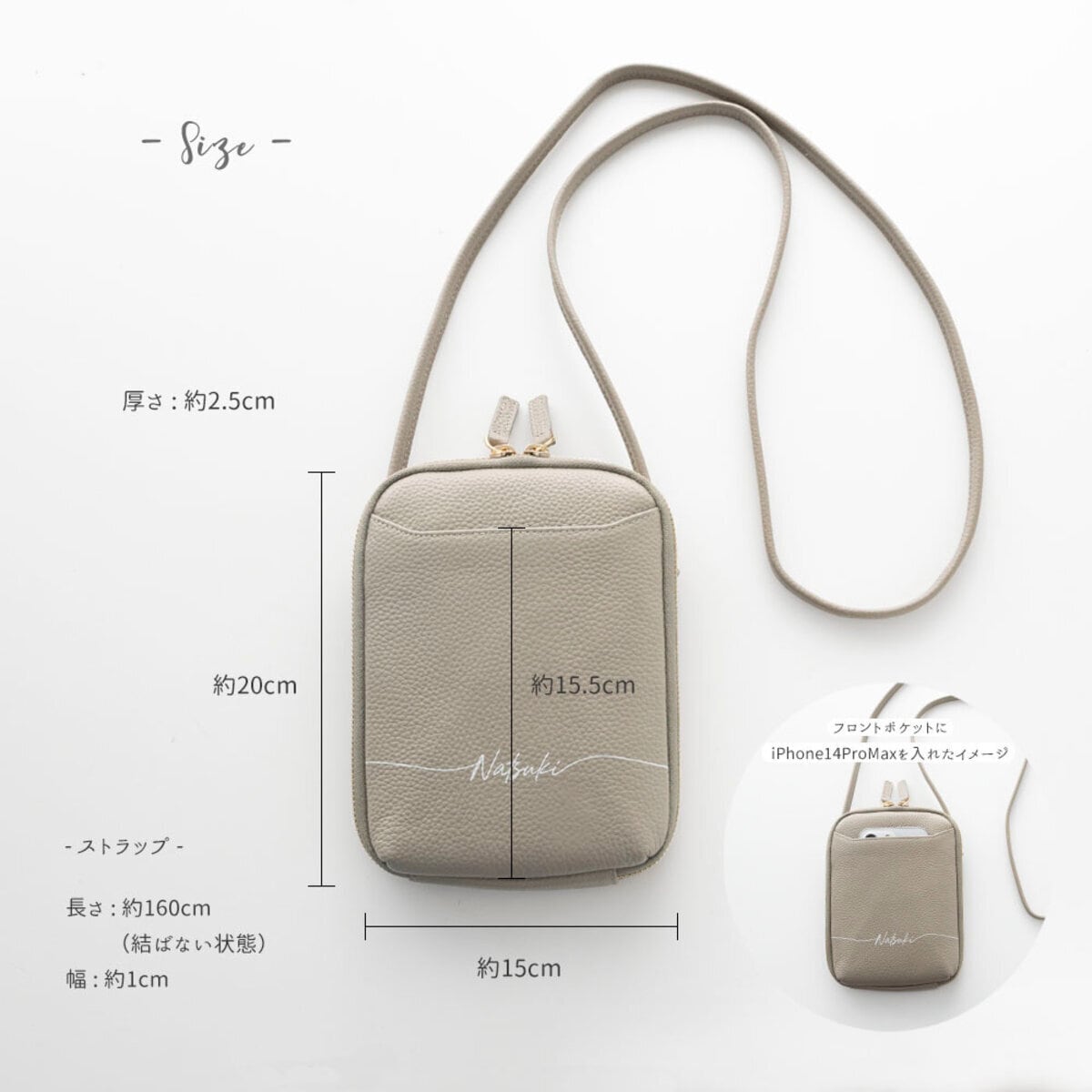 【 ラウンドファスナー スマホポシェット 名入れ 】 本革 スマホショルダー カード入れ キーリング スマホポーチ ニュアンスカラー