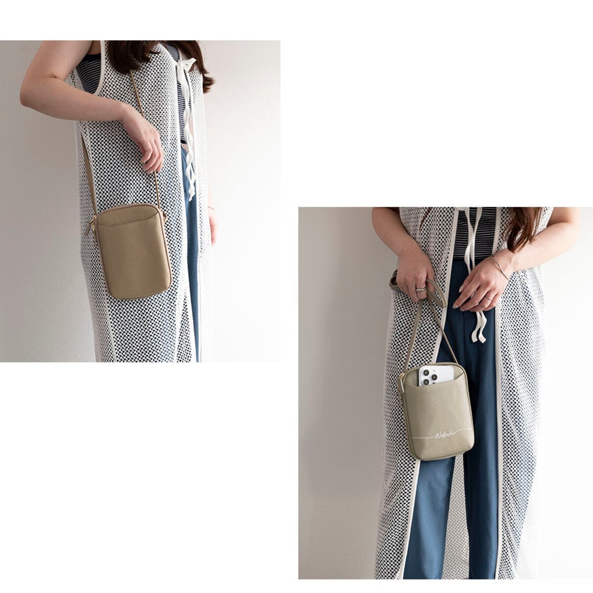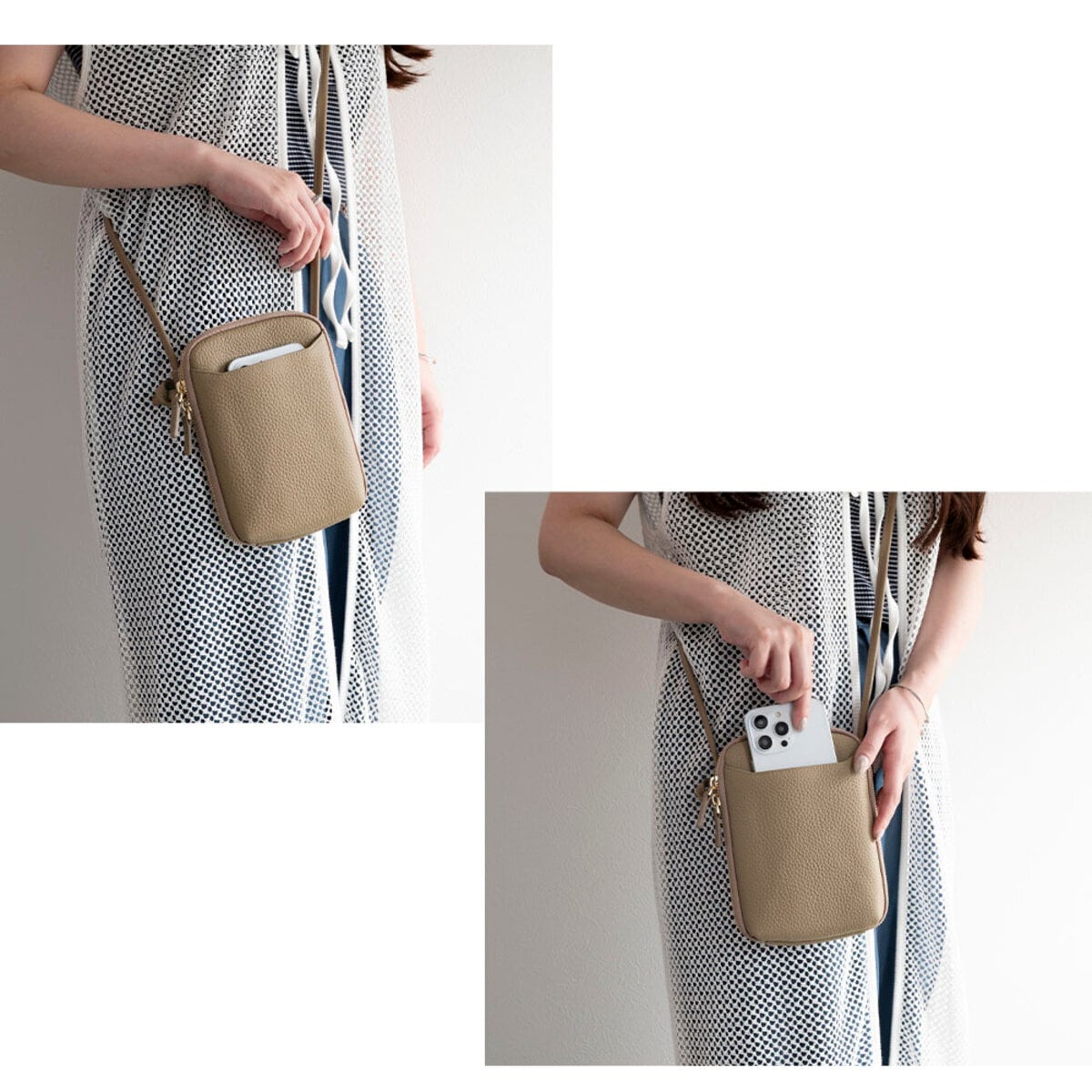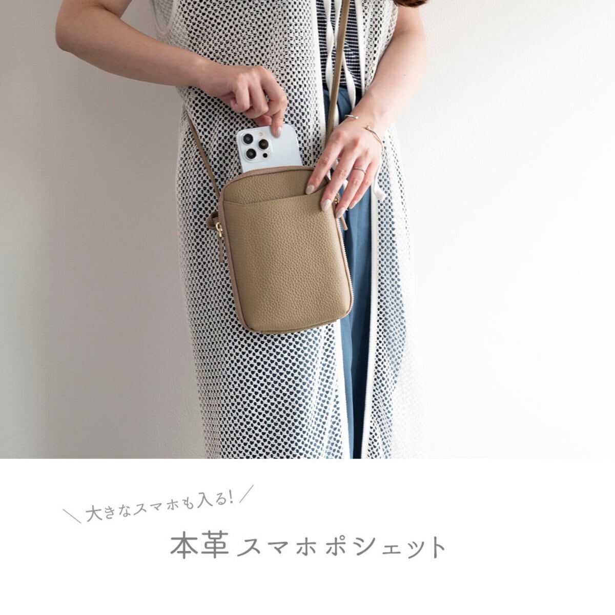 \ 大きなスマホも入る! 本革 スマホポシェット ? ?? /