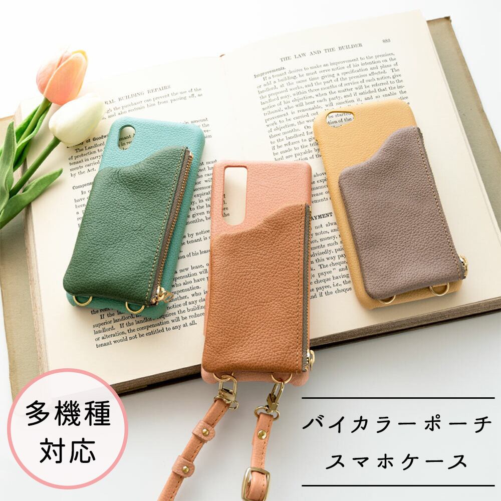 多機種対応 ポーチ付き バイカラー 【 シュリンク 】 お財布 ミニポーチ 国産 送料無料