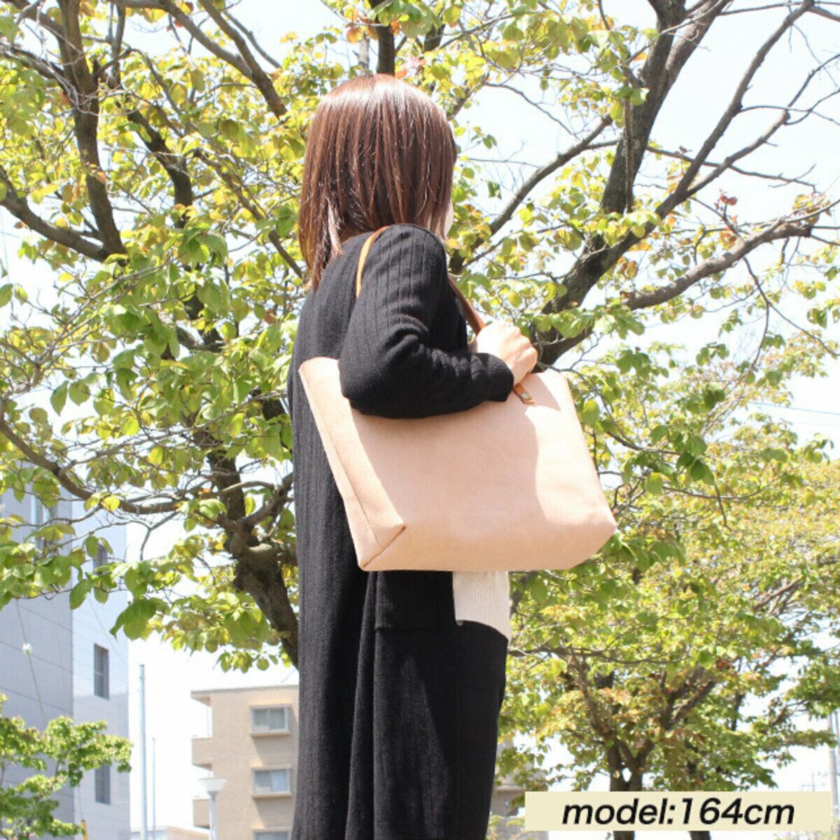 ナチュラルな床革で、シンプルかつ飽きのこないデザインのトートバッグです。