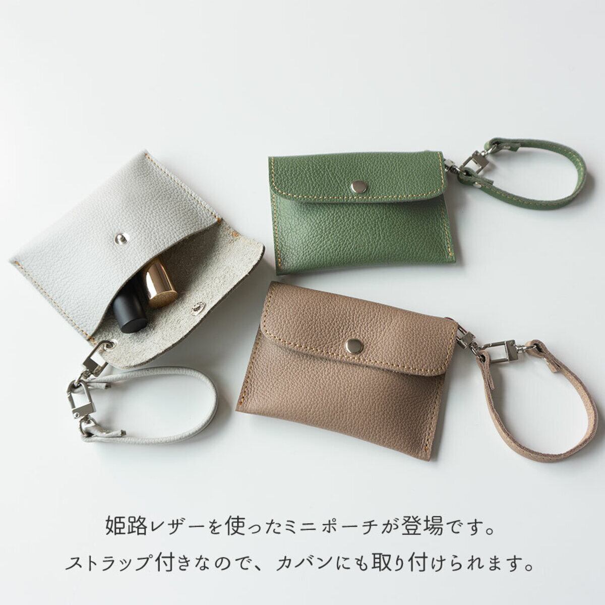 ミニ ポーチ 小 【 シュリンクレザー 】姫路レザー ストラップ付 小物入れ