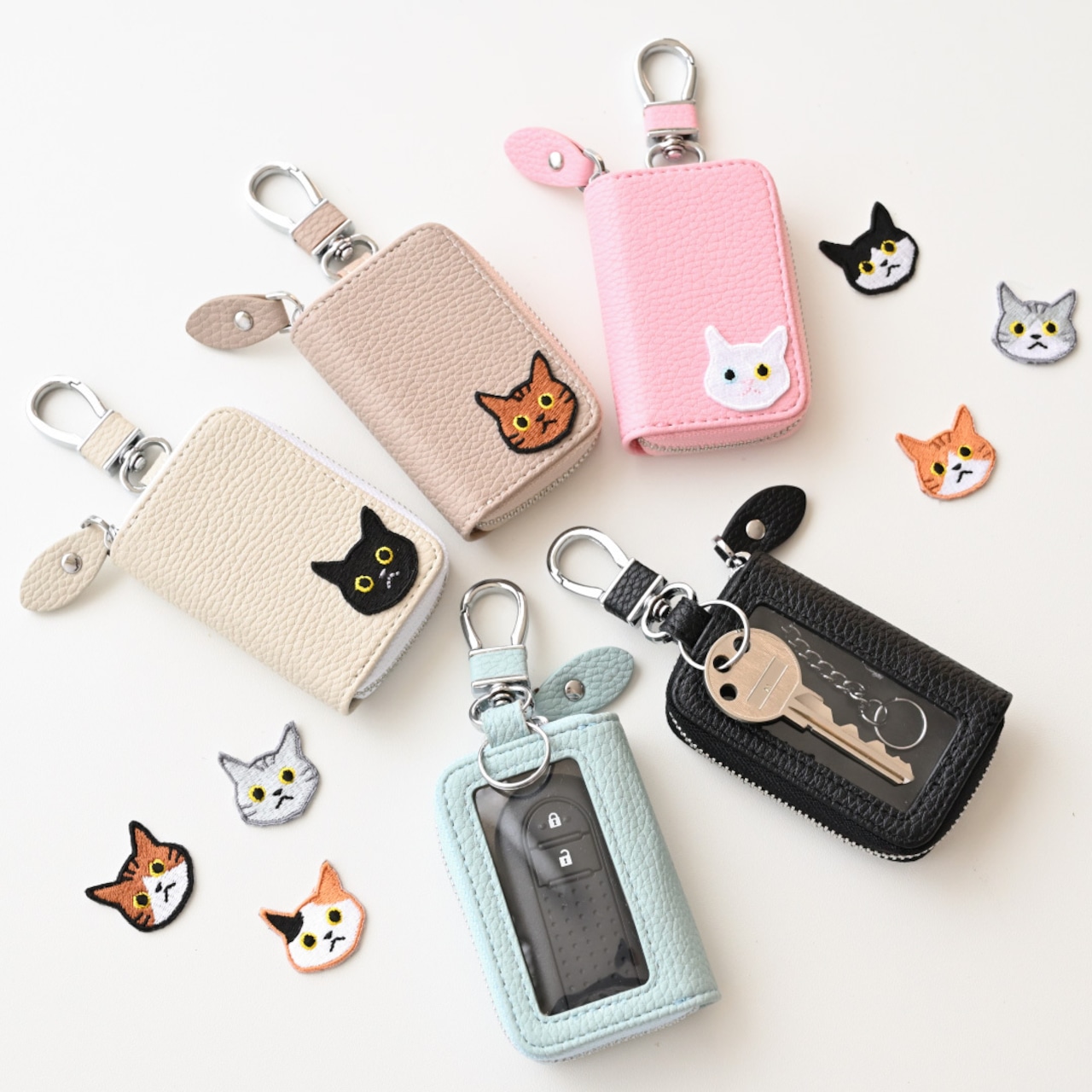 大人気の3匹の猫のワッペン付きスマートキーケースができました。