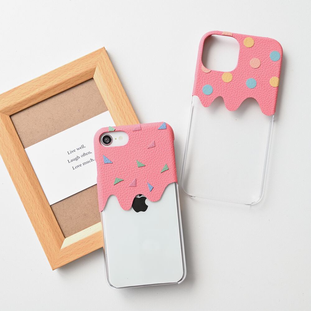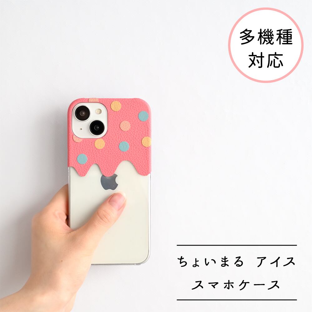 iPhone限定 スマホケース 【 ちょいまる アイスクリーム 】 シュリンクレザー クリア アイス