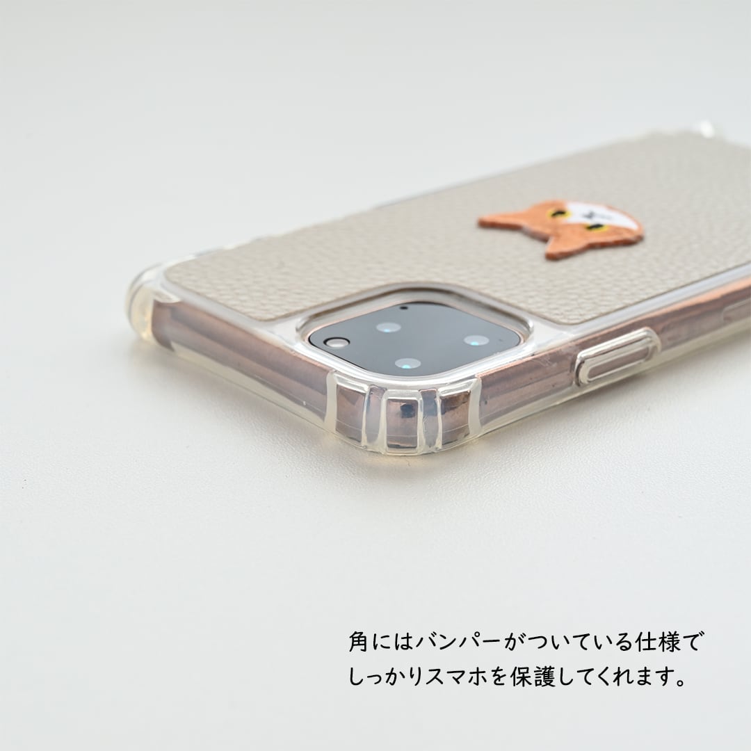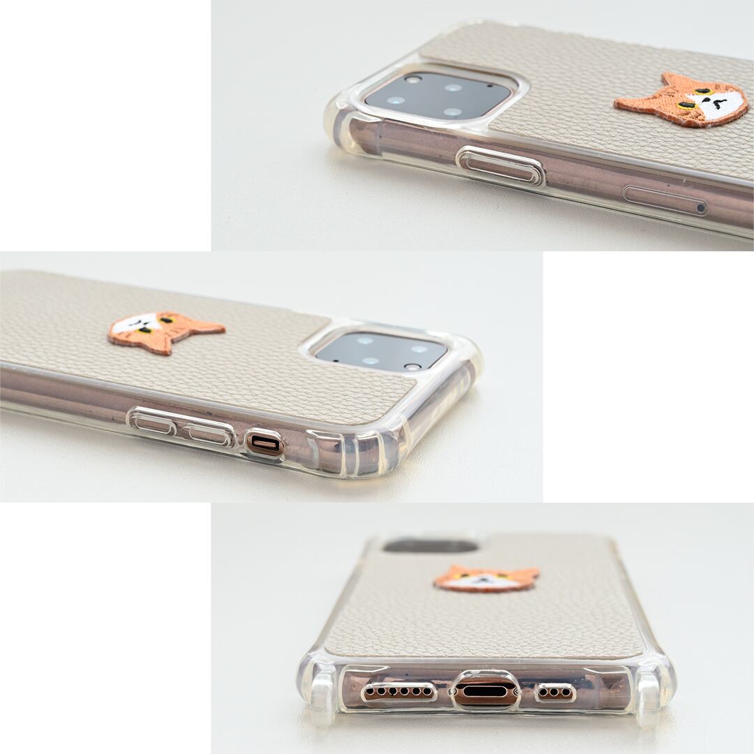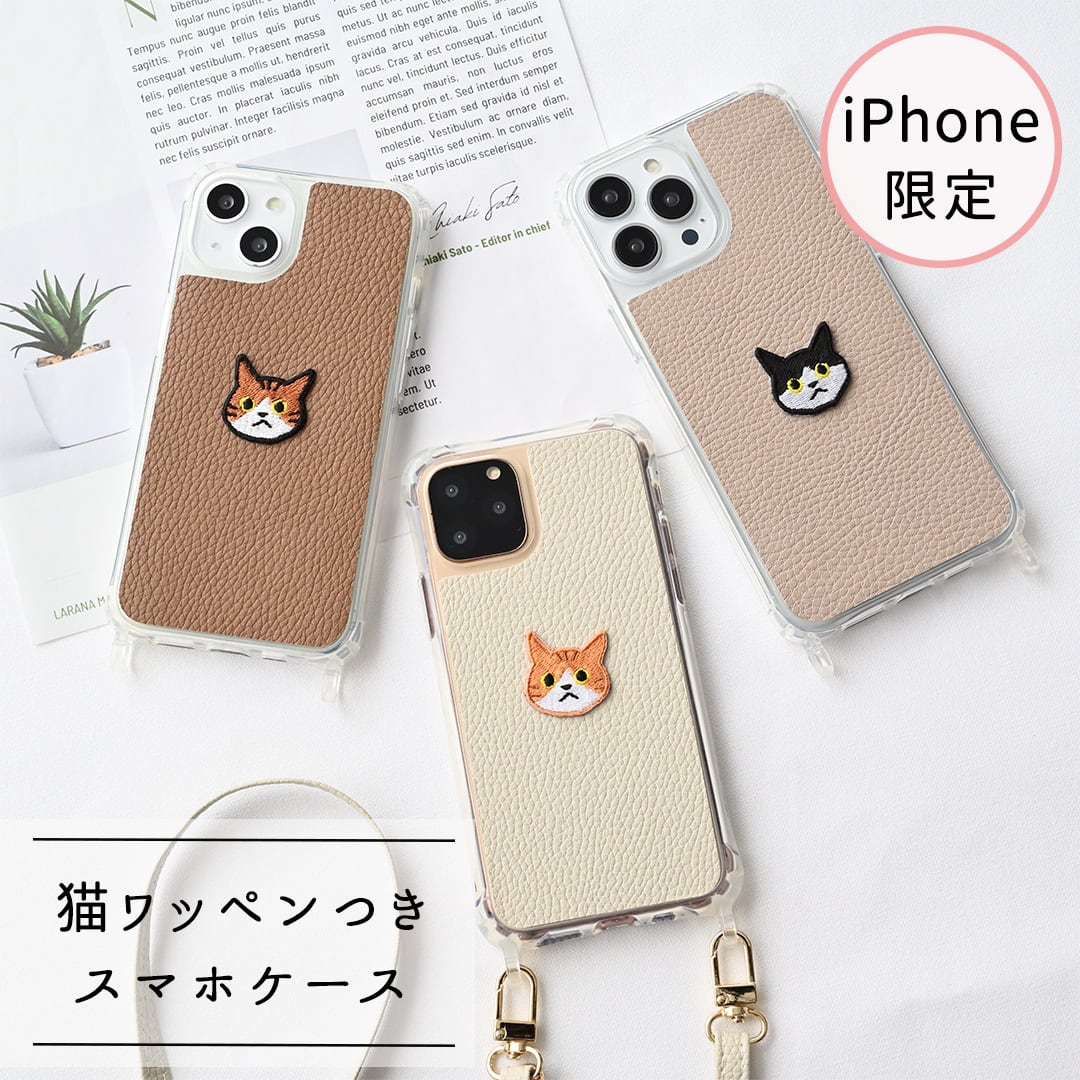 リアケース クリア 【 simple ワッペン 猫 】 刺繍 スマホケース スマホショルダー