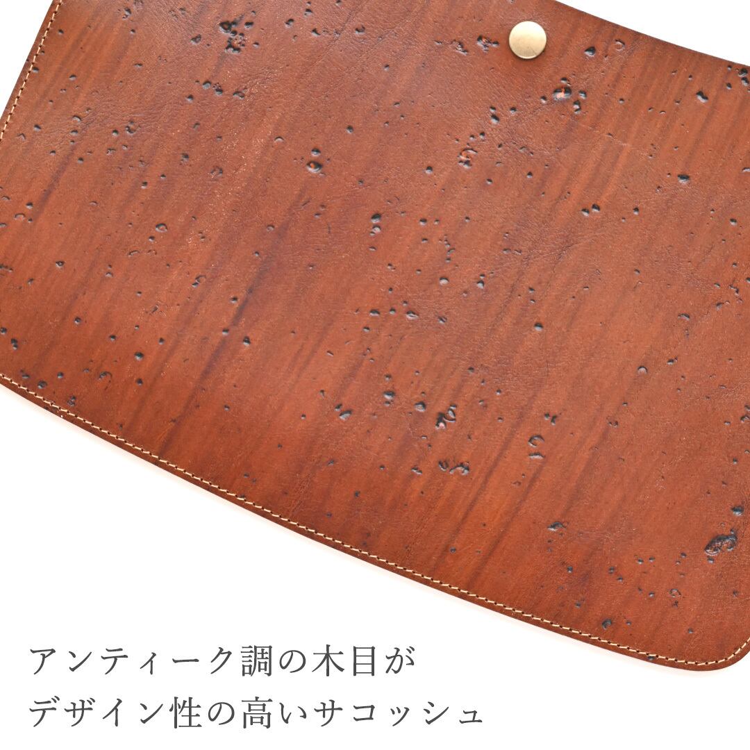 サコッシュ 【 木目 アンティーク調 】 革 レザー 送料無料
