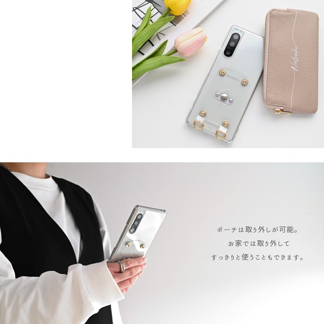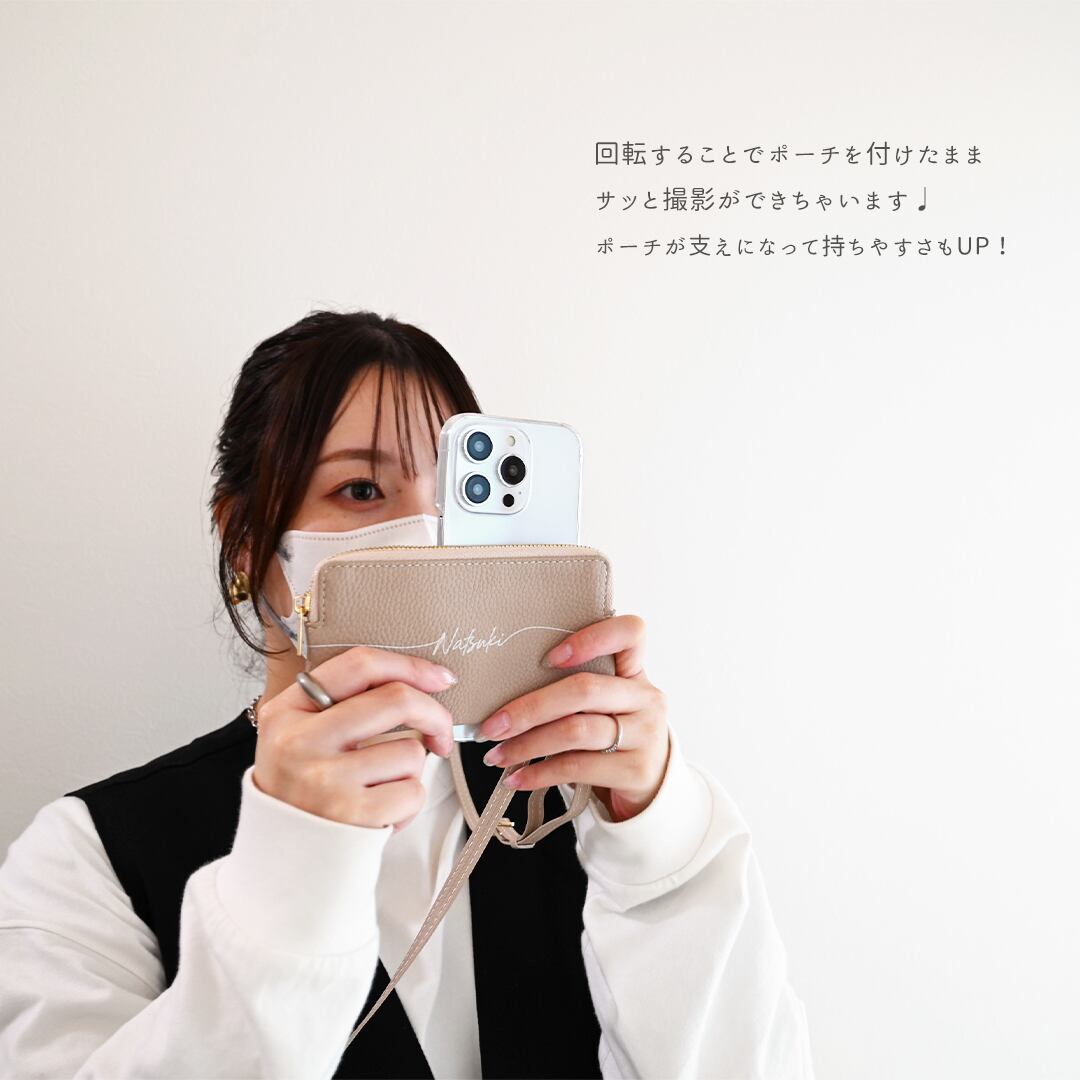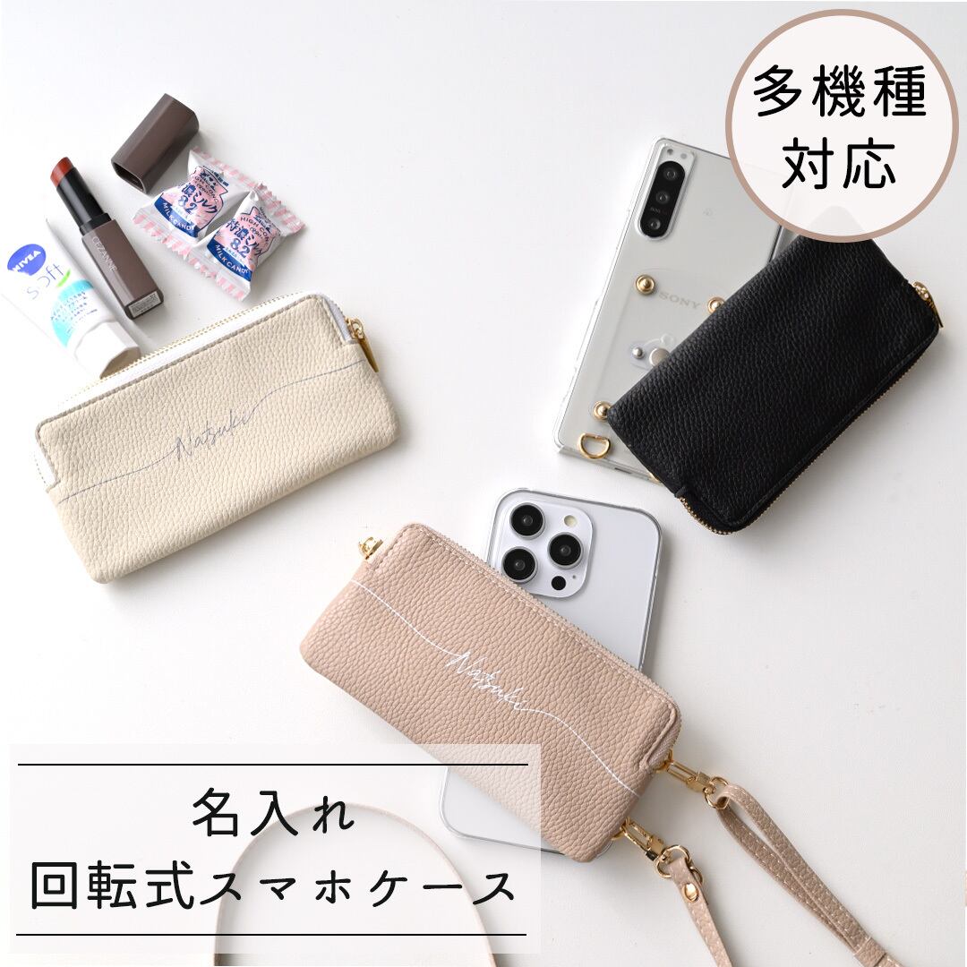 多機種対応 回転式 クリア スマホケース 【 大きなファスナーポーチ 名入れ 】 スマホショルダー 財布