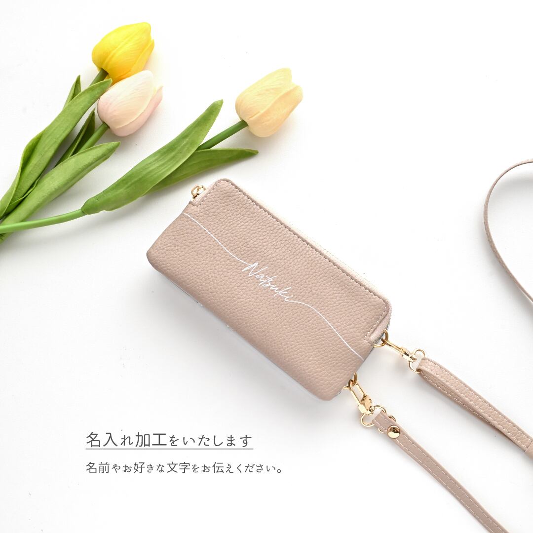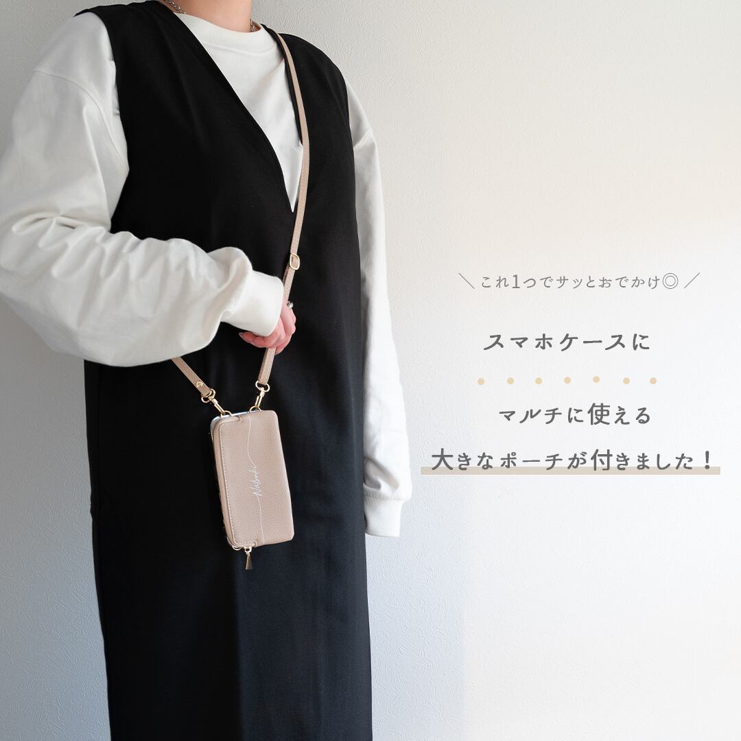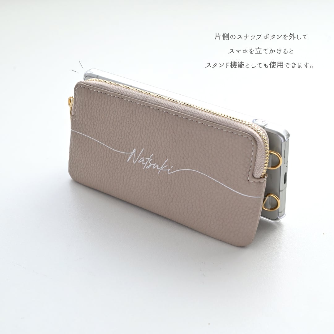 多機種対応 回転式 クリア スマホケース 【 大きなファスナーポーチ 名入れ 】 スマホショルダー 財布