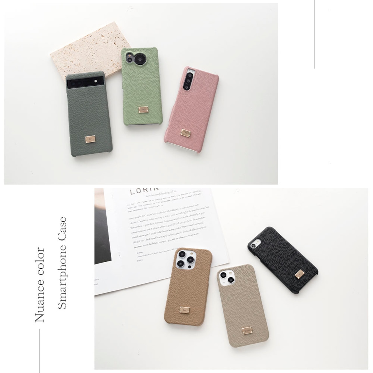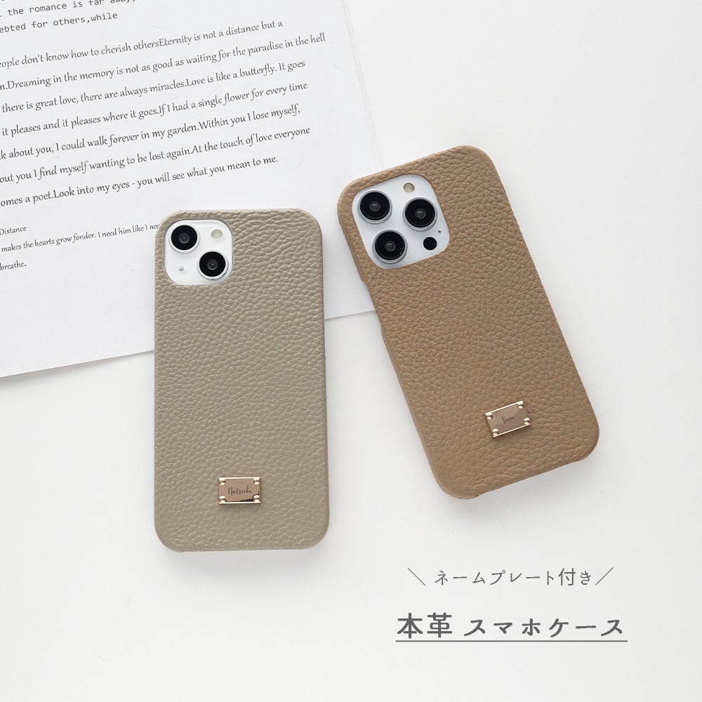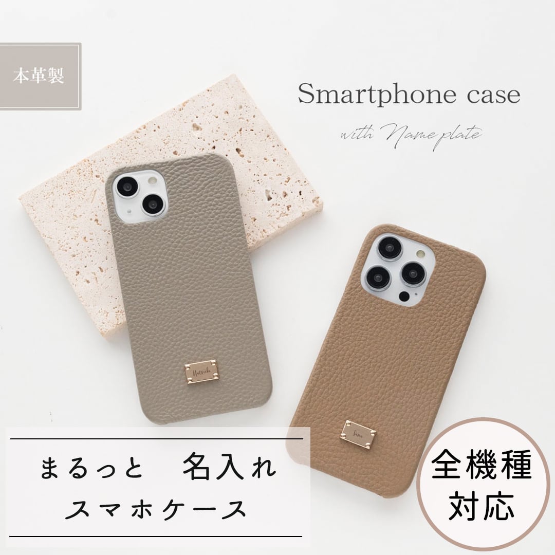 全機種対応 スマホケース ネームプレート付 【 本革 まるっと Nuance 名入れ 】 ネームタグ 名入れ無料