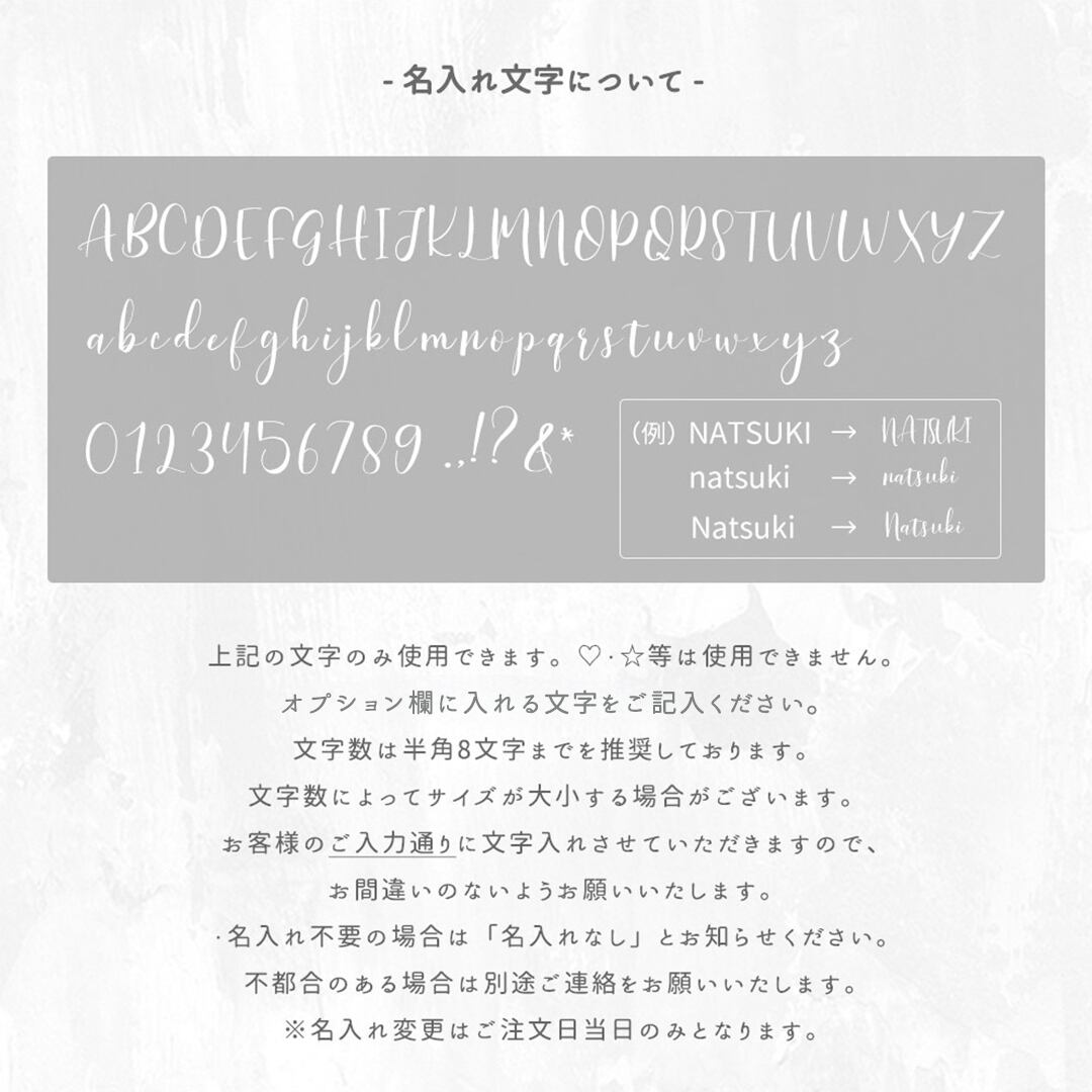 ・ご購入の際、オプション記入欄に入れる文字の記入をお願いいたします。