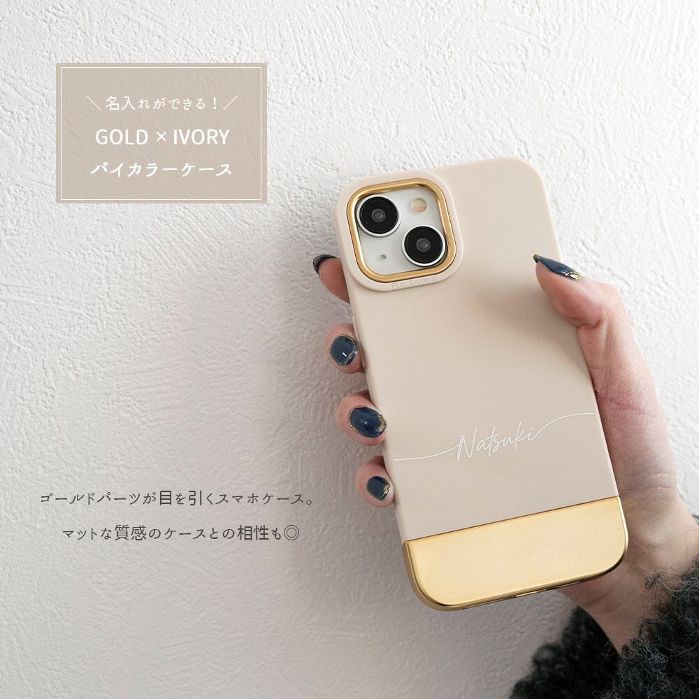 スマホケース 【 バイカラー TPUケース 名入れ 】 スマホショルダー ゴールドパーツ 名入れ無料
