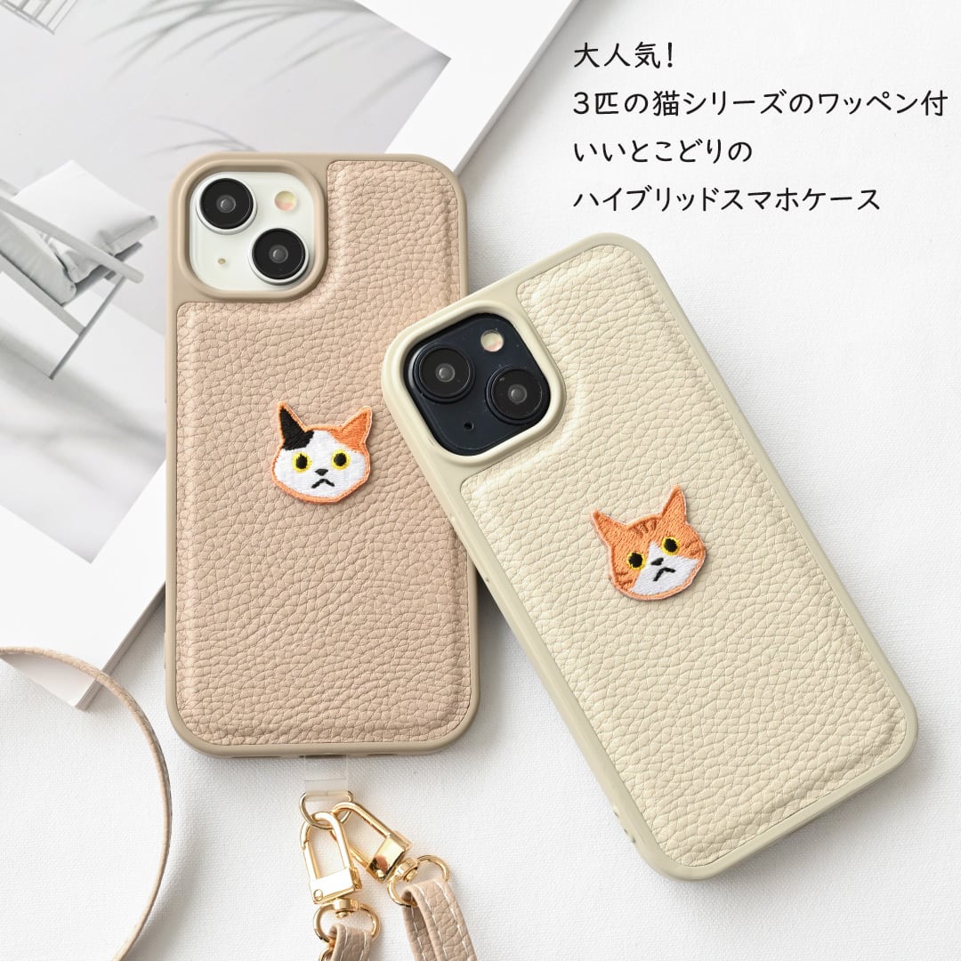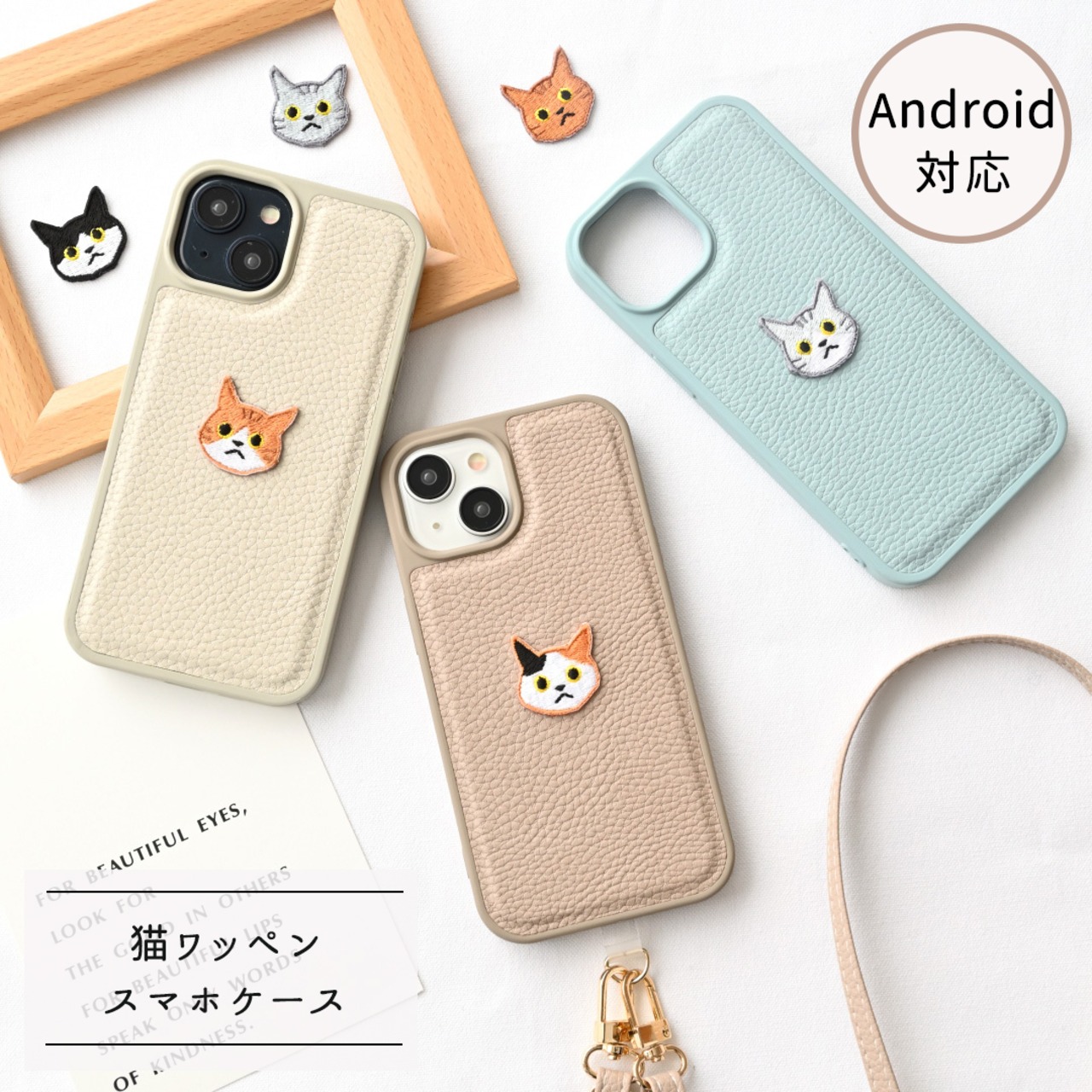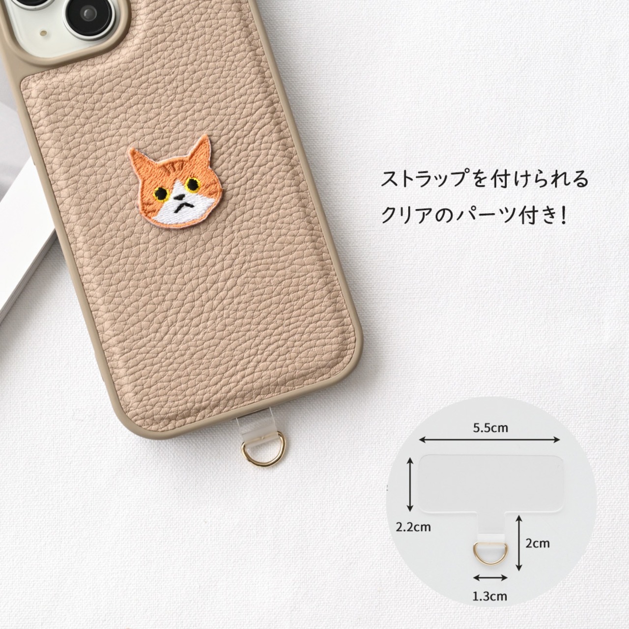 カラー リアケース 【 Simple ワッペン 猫 】 刺繍 iPhone スマホケース スマホショルダー