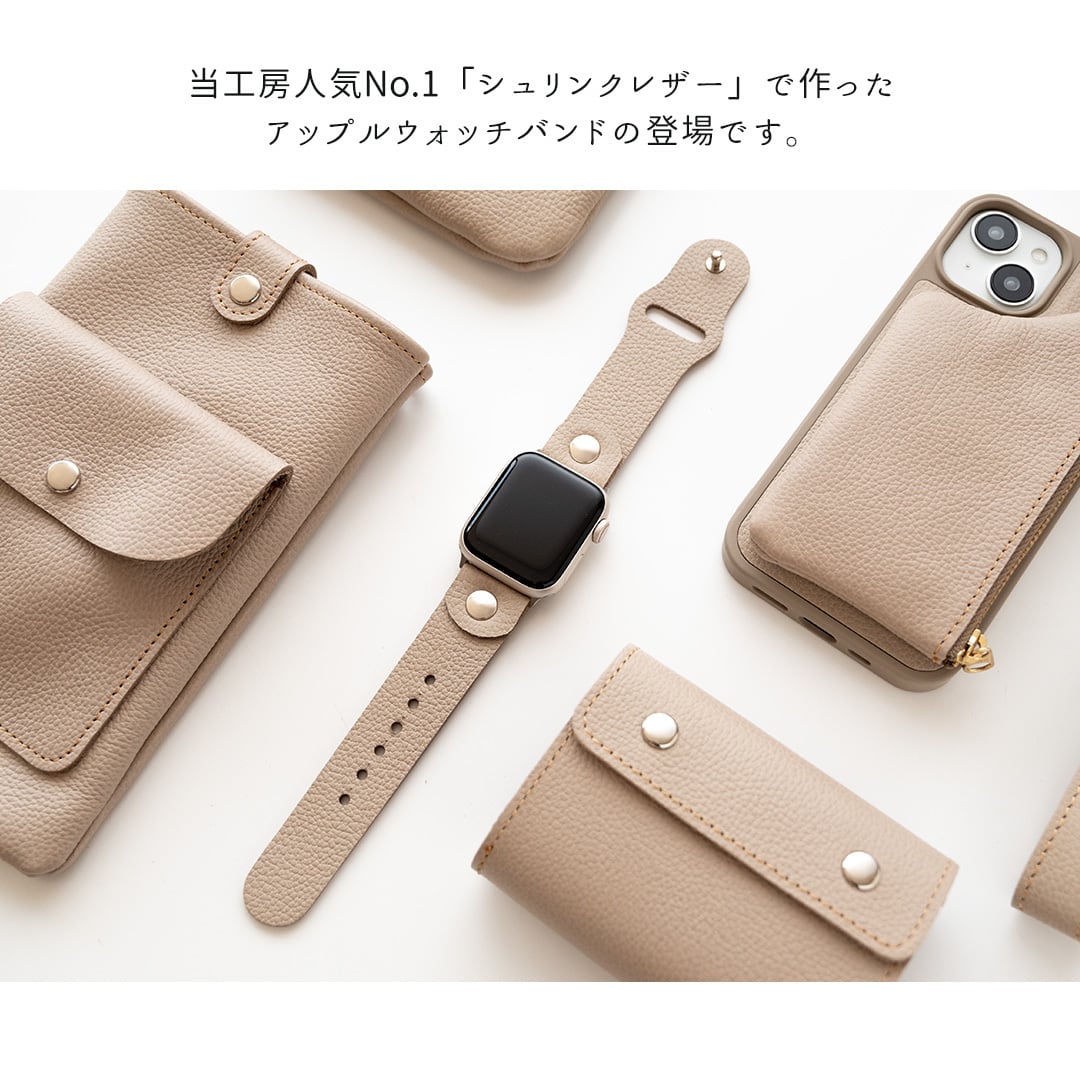 AppleWatch バンド 【 シュリンクレザー 】 スリムデザイン 本革 ニッケルフリー