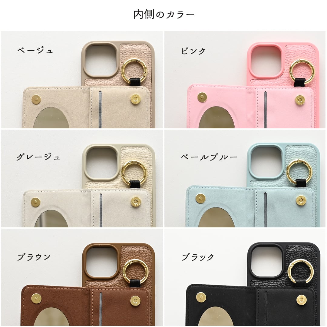 多機種対応 カラーリアケース 【 キルティング 2つ折りカードケース 】 ミラー付き