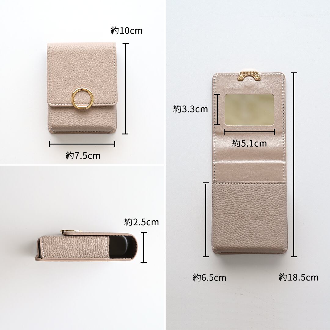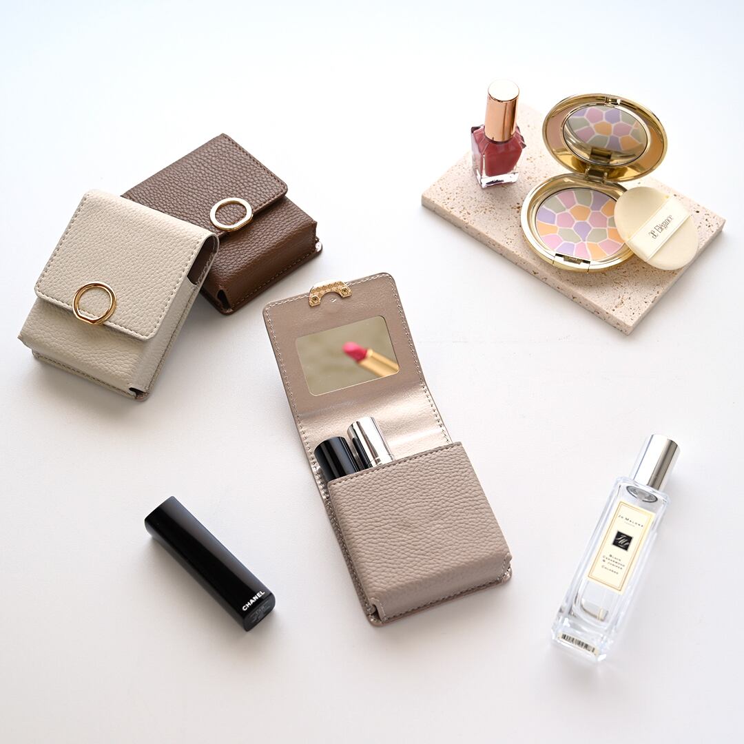 リップケース リングパーツ 【 simple 】 リップポーチ ミラー付き カード入れ くすみカラー