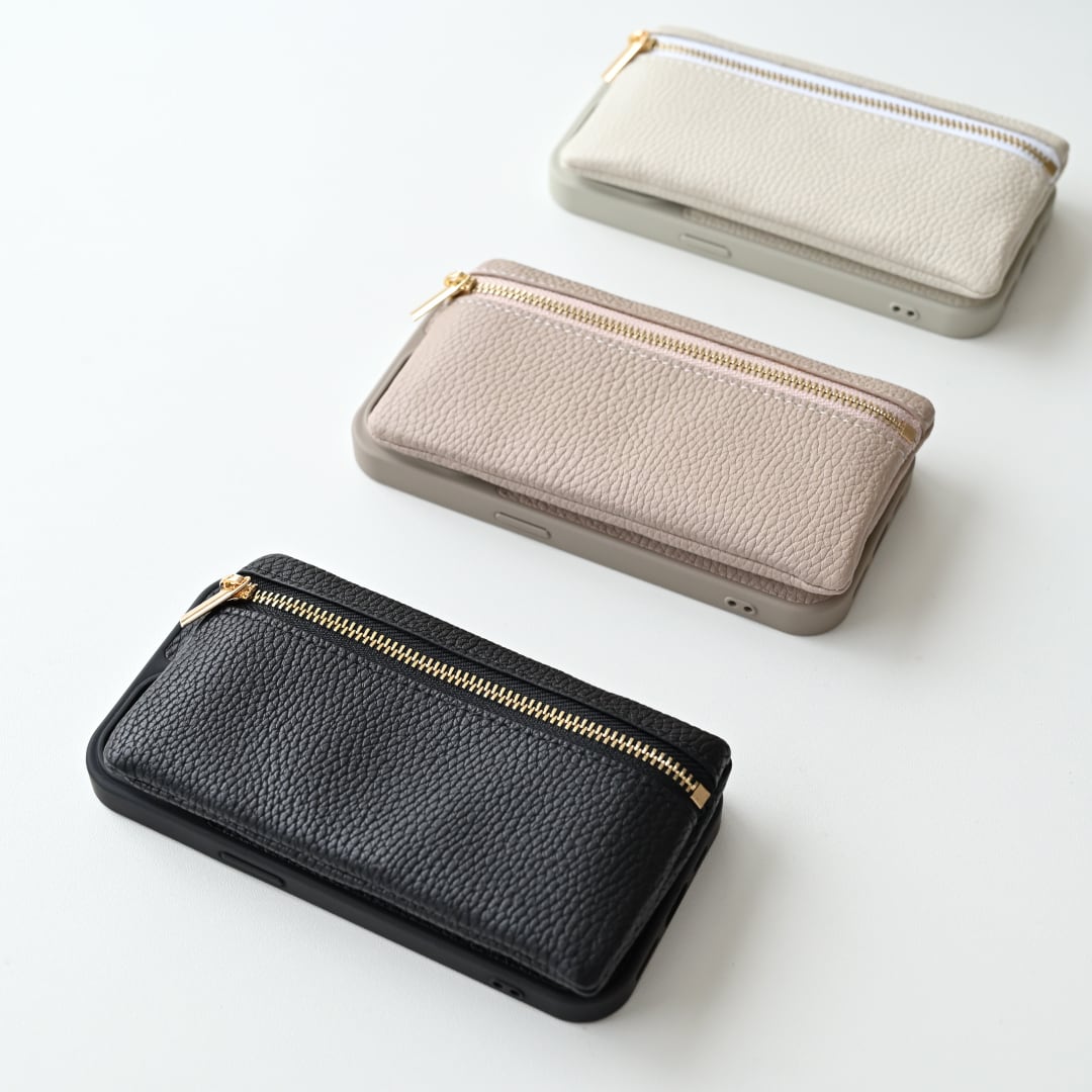 カメラが飛び出すスマホケース 多機種対応 カラーリアケース 【 スライド式 トップファスナーポーチ 】