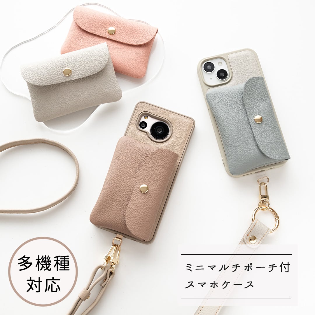 多機種対応 カラーリアケース 付け替え式 ミニマルチポーチ 【 シュリンクレザー 】 本革 スマホケース スマホショルダー くすみカラー バイカラー