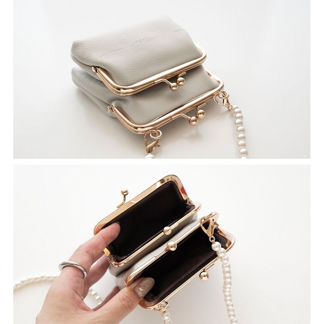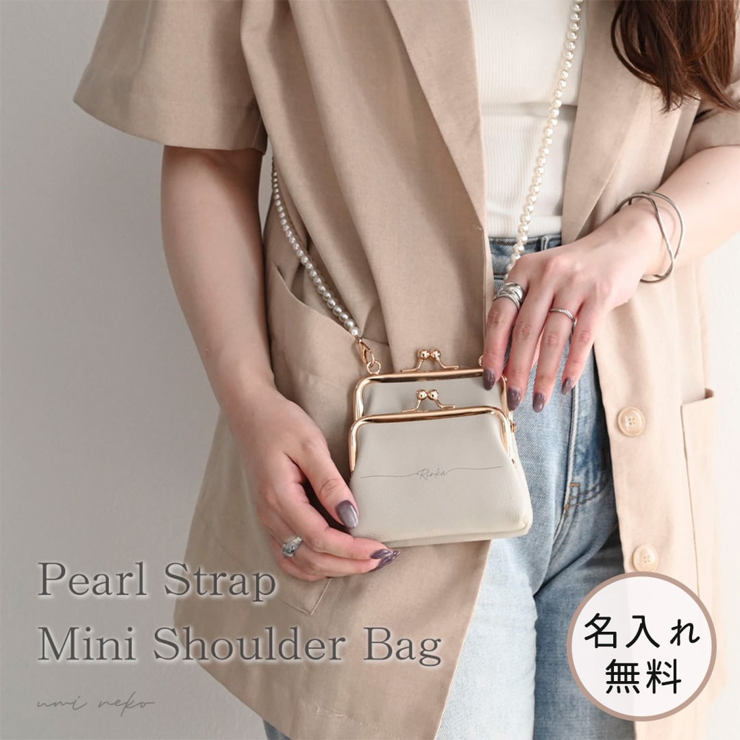 名入れ 【 W がま口 ミニ ショルダーバッグ 】 パールストラップ付 ポシェット ミニバッグ ギフト