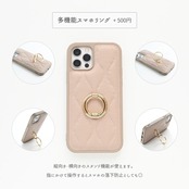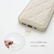 iPhone限定 カラー リアケース 【 キルティング ウェーブ 】 スマホショルダー スマホケース くすみカラー パーツ付